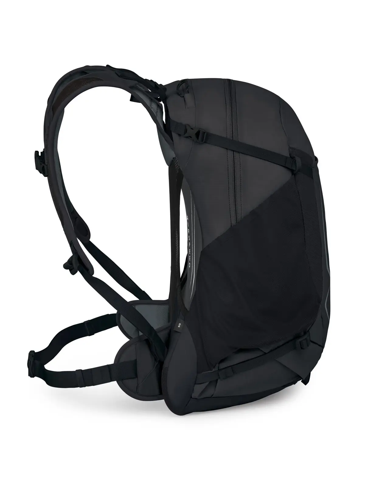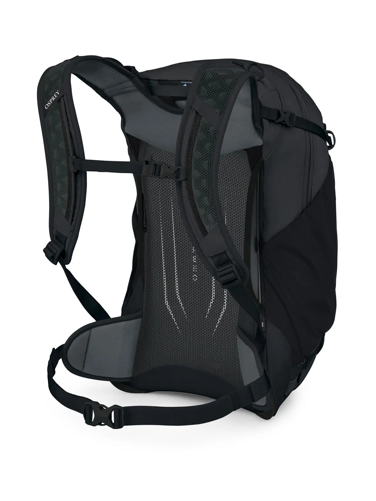 気軽な散策からワンデイハイクまで対応する軽量ハイキングパック。背中から荷重を離しつつ、動きにしなやかに追従するテンションメッシュバックパネルを採用。レインカバー、フロントコンプレッションポケット、下部コンプレッションストラップ、トップジッパーポケットなど、快適機能を満載。