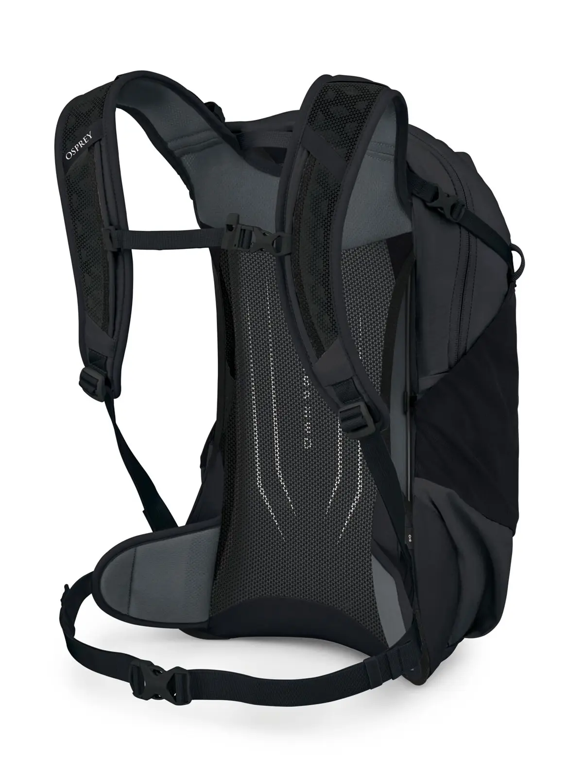 気軽な散策からワンデイハイクまで対応するコンパクトなハイキングパック。背中から荷重を離しつつ、動きにしなやかに追従するテンションメッシュバックパネルを採用。レインカバー、フロントジッパーポケット、トレッキングポールループ、安定性を高めるパッド内蔵ヒップウィングなど、快適機能を満載。