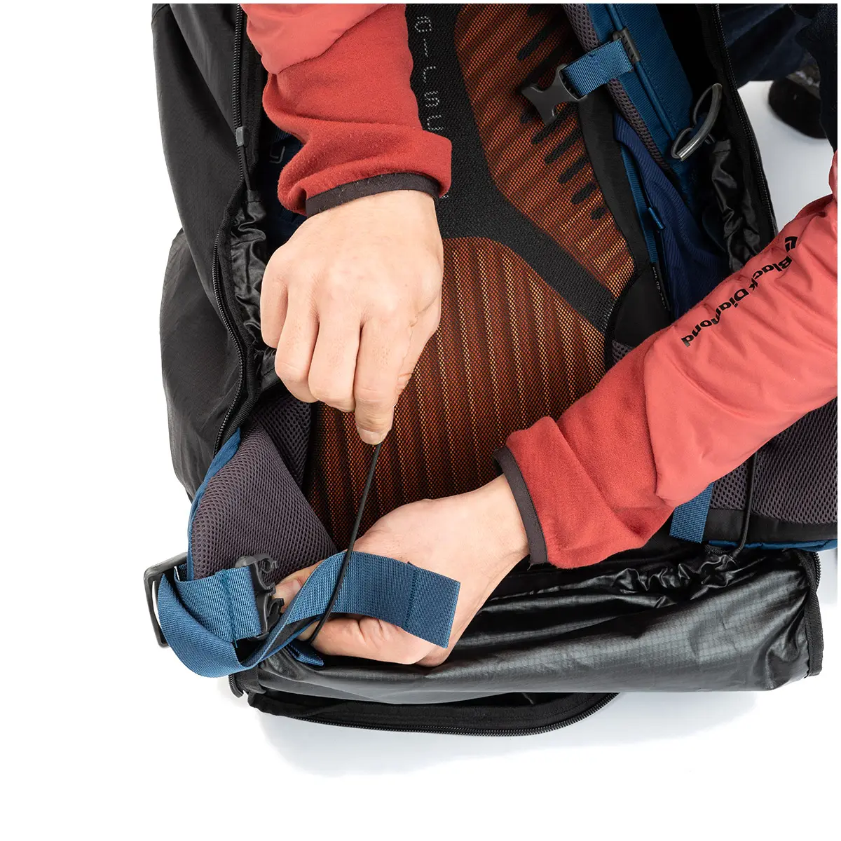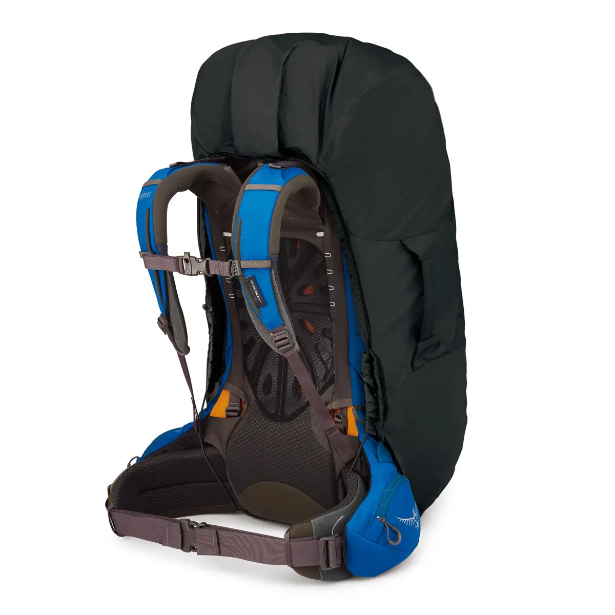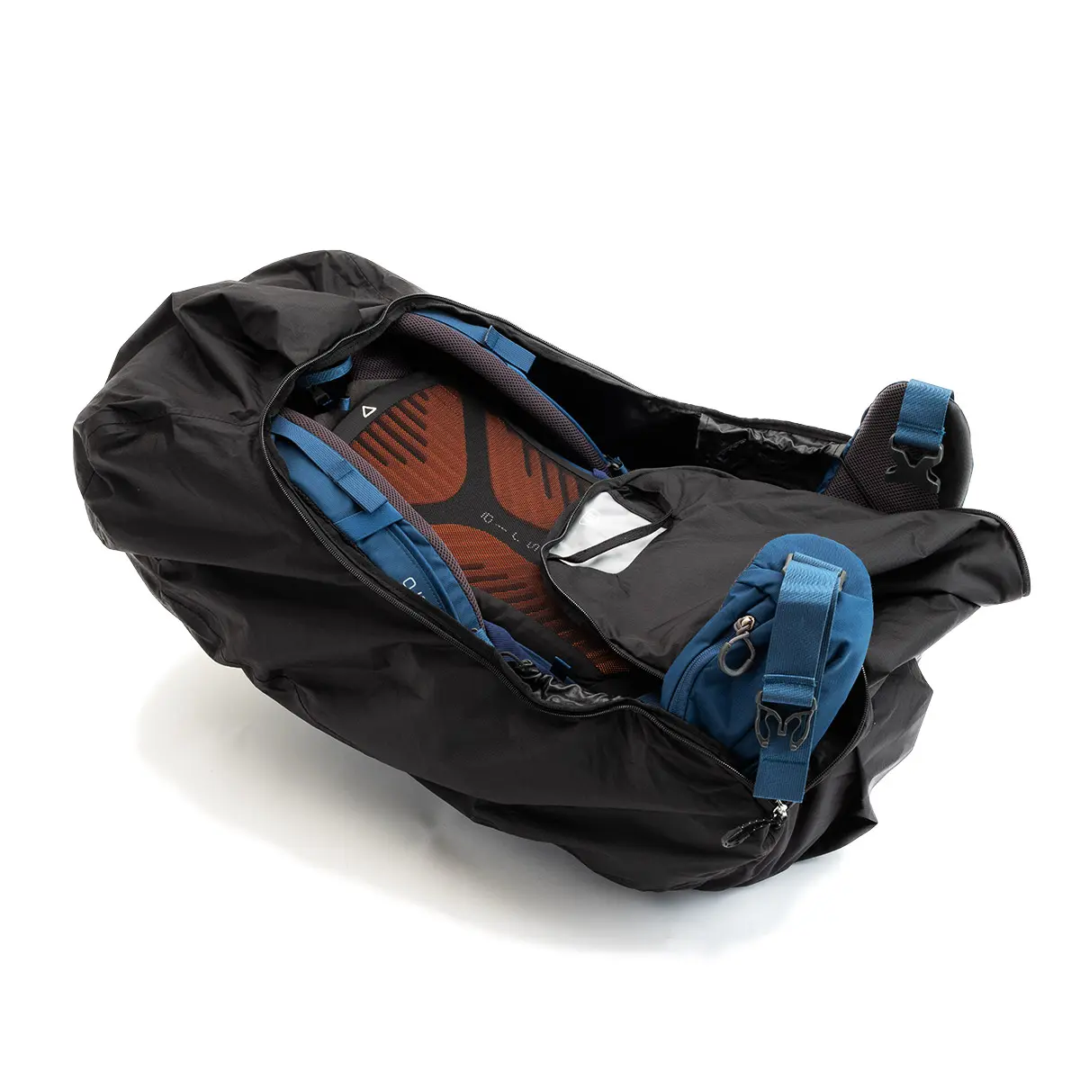 旅行中はジッパー付きの丈夫なカバーでパックを保護し、トレイルではパックストラップと完全なテープドシームでレインカバーとして使用できます。bluesign®認証リサイクル素材100%。
