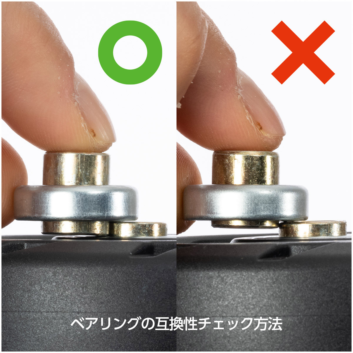 オスプレー製ホイールバッグの交換用ホイール(2個セット)※カラーはブラックになります。ボールベアリングを内蔵し、静粛かつなめらかに転がります。[ホイールの交換方法 ]4mmの6角レンチを使用して交換することができます。(1) 4mmの6角レンチでホイールを固定しているボルトを抜き、ホイールを取り外します。(2) オスプレーのホイールバッグは新型と旧型とで設計が異なり、軸受けの突き出し量が違います。新型は軸受けの突き出しが約1~1.5mmですが、旧型は約2mmあります。取り外したホイールの軸受けの突き出し量を計測して、新型なのか旧型なのかを確認します。(3) 新型の場合は、当製品をそのままボルトで固定してください。旧型の場合は、当製品をそのまま使用するとホイールの取り付けにガタが生じたり、無理にボルトを締め込み過ぎると転がりが悪くなりますので、もともと付いているベアリングを取り外して新しいホイールに取り付けることをおすすめします。[ベアリングの取り外し方法]6角レンチを1cmほど軸受けに差し込んで、こじるようにして取り外します。ベアリングは両側から挿入されていますので、レンチを深く差し込み過ぎると、こじることができません。