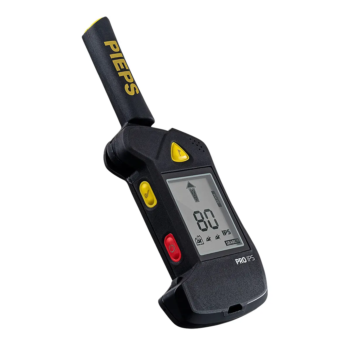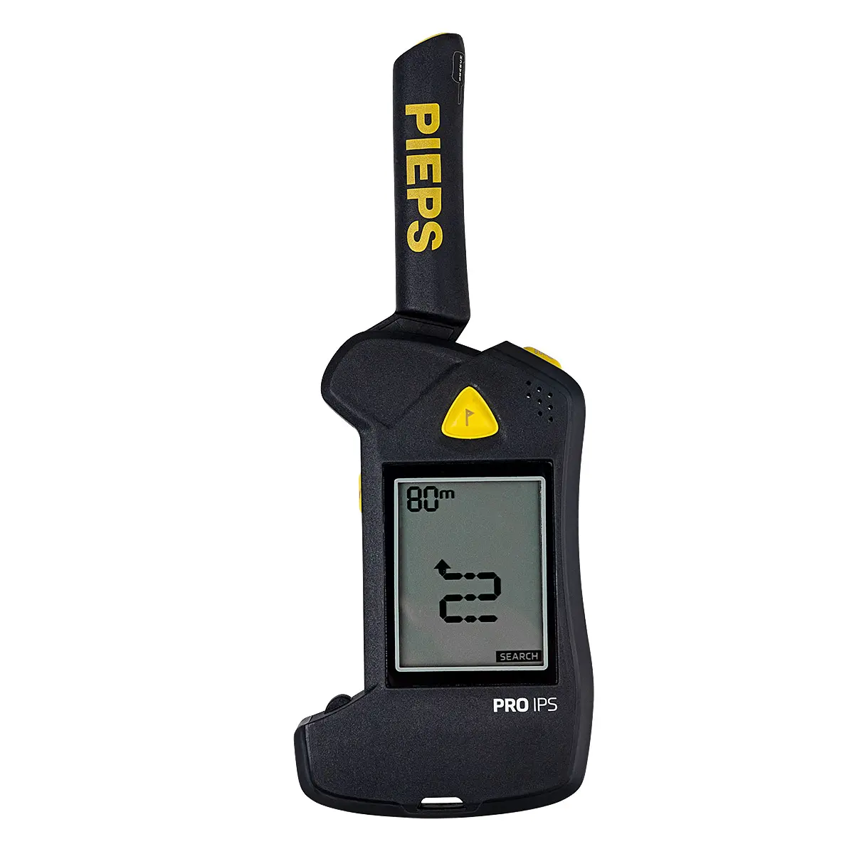 スマートフォンやスマートウォッチ、アクションカメラ、無線機などの電子機器は、電磁気干渉により雪崩ビーコンの性能を低下させます。ピープス社が開発したIPSシステムは、送信(SEND)モード時に電磁気の影響を受けると低下してしまう送信出力を、捜索における適正レベルに維持することにより、電磁気の干渉を排除します。また、電磁気ノイズを受けにくいデジタルフロントエンドと、折りたたみ式のバーにXアンテナを内蔵したアンテナデザインにより、捜索(SEARCH)モード時にも電磁気干渉の影響を低減します。