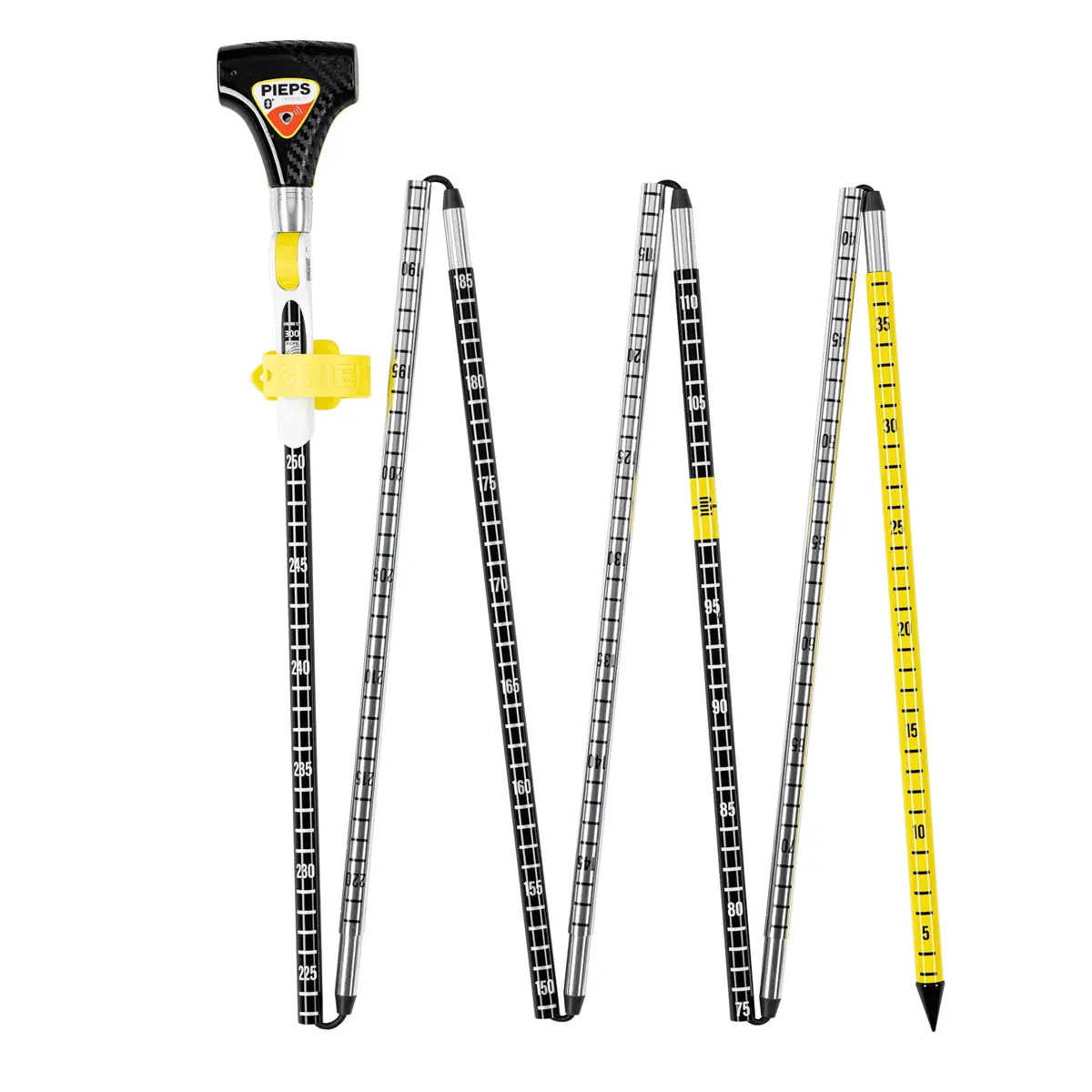 ファインサーチ~ピンポインティングにかかる時間を60%短縮可能なiプローブ。その秘密は、iプローブが雪崩ビーコンのシグナルを受信。埋没者から2mの距離で青色LEDの「点滅」と「ピッピッ」という音で埋没者の探知を知らせ、さらに50cmの距離で青色LEDの「点灯」と「ピーー」という音で埋没者を特定し「ヒット」を可視化します。たとえ埋没者にプローブが当たっていなくても掘り始められ貴重な救助時間を短縮できます。長さは300cmですが50cmの探知距離で実質350cmと深い埋没まで対応します。Bluetooth®とPIEPSアプリで各種設定やデバイスチェック、アップデートができます。