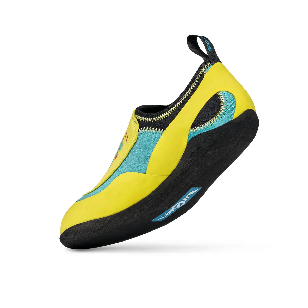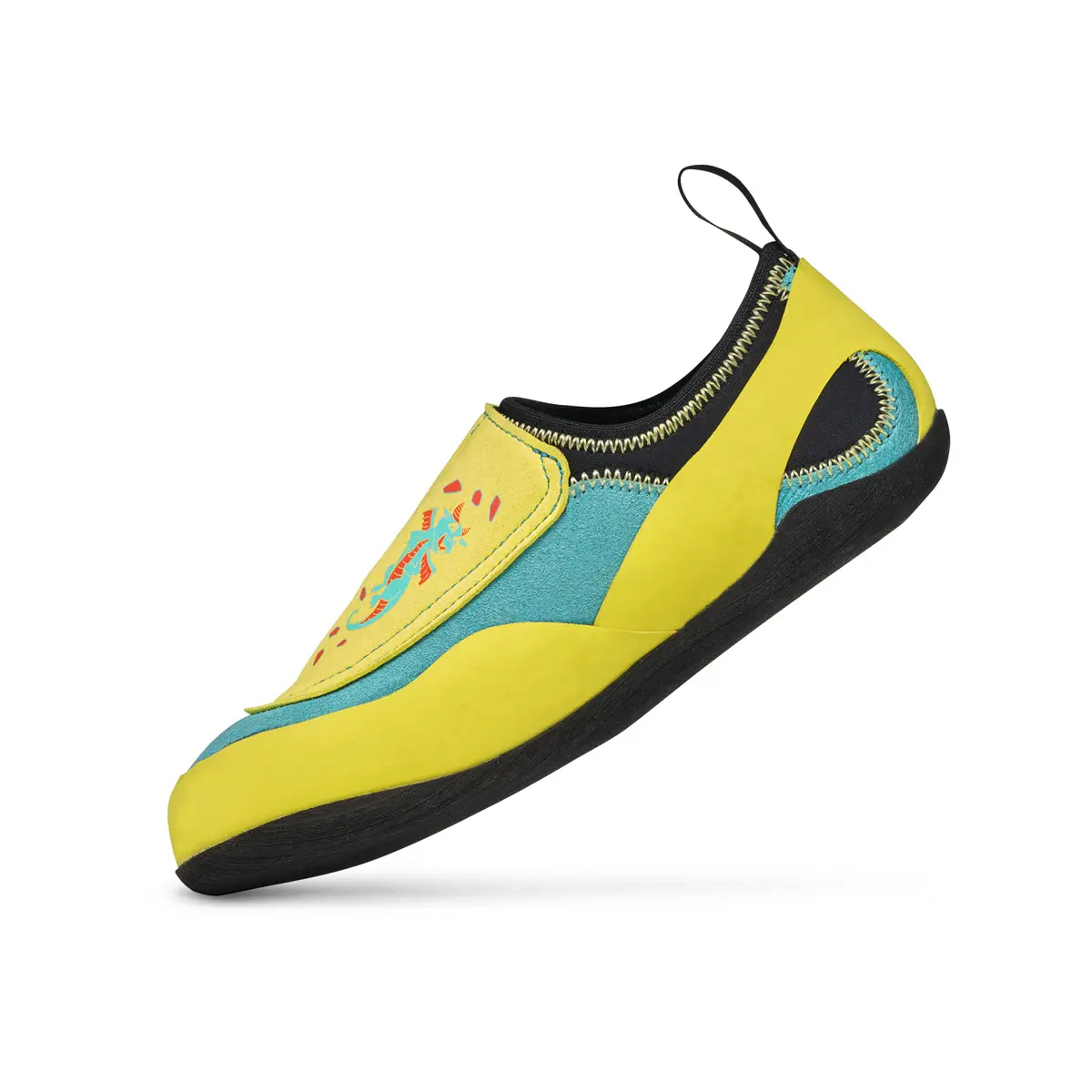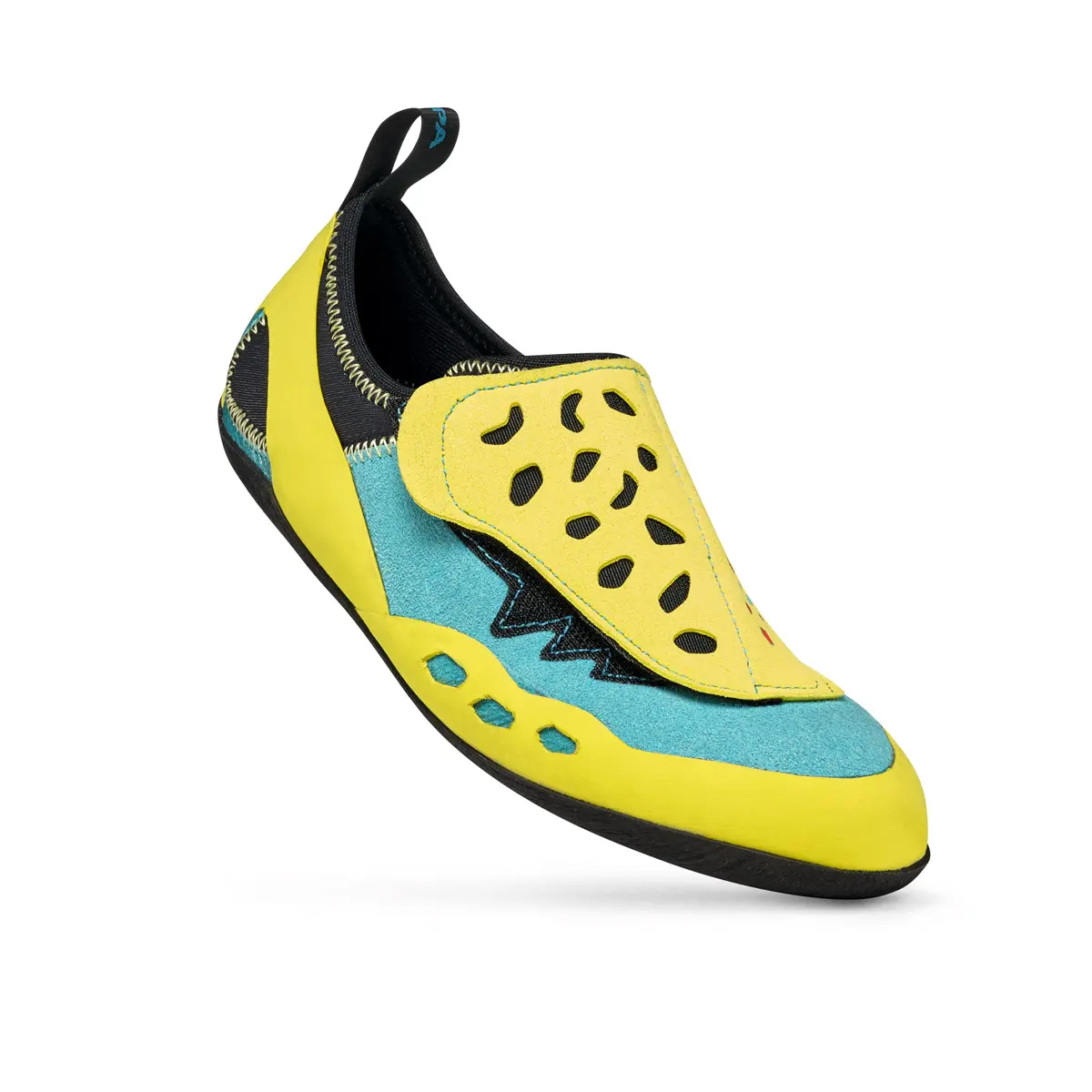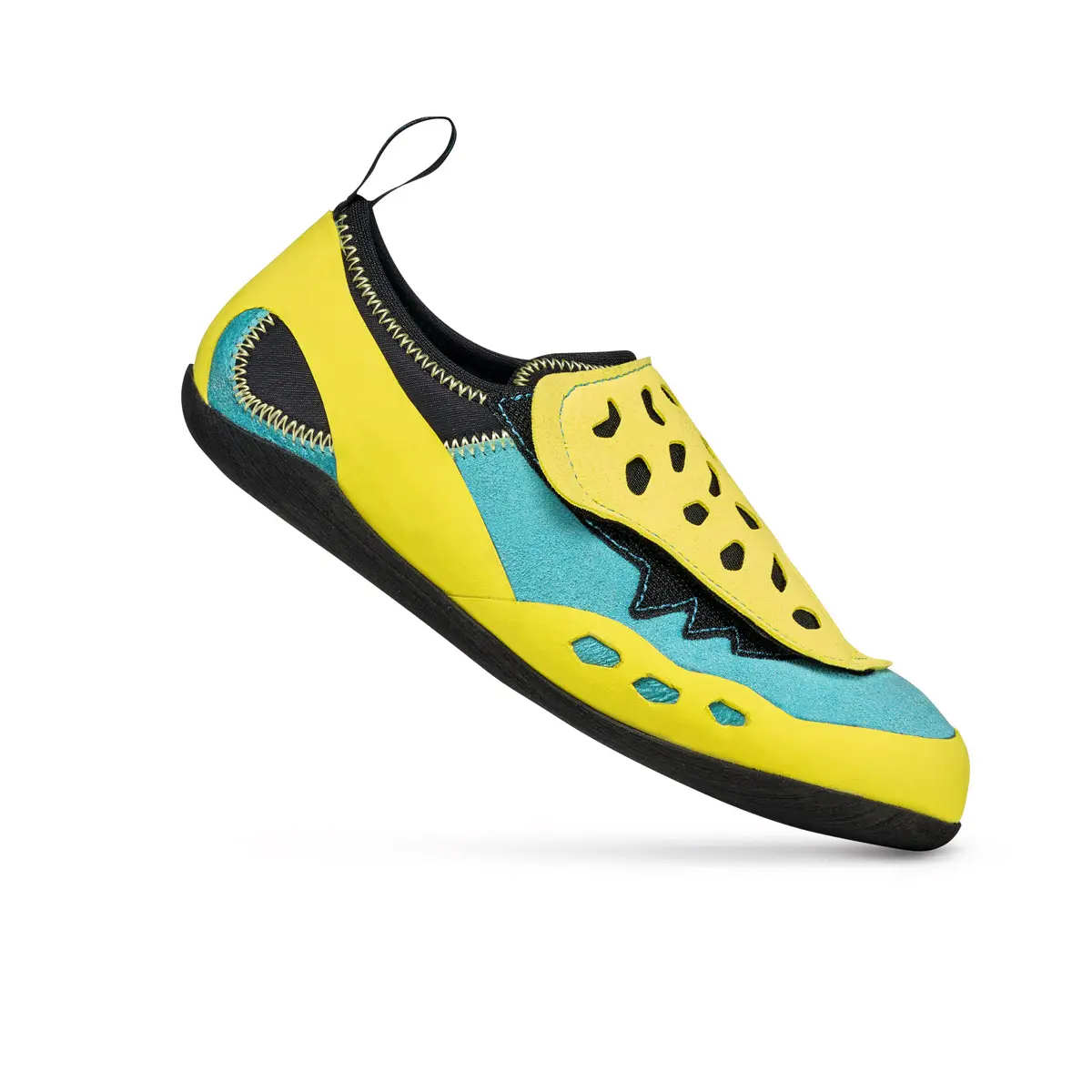 小さな子供の足の発達を阻害しないように、つま先にゆとりを持たせた優しいフィッティングのキッズ用クライミングシューズ。ソールも柔らかく、ホールドに合わせたフットワークを学べます。踵には4mmのEVAフォームのクッションが入っています。小さな子供も選べるサイズ展開なので、初めてのクライミングシューズにもおすすめです。