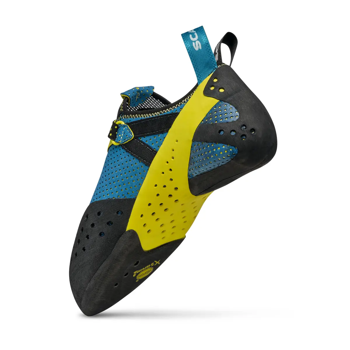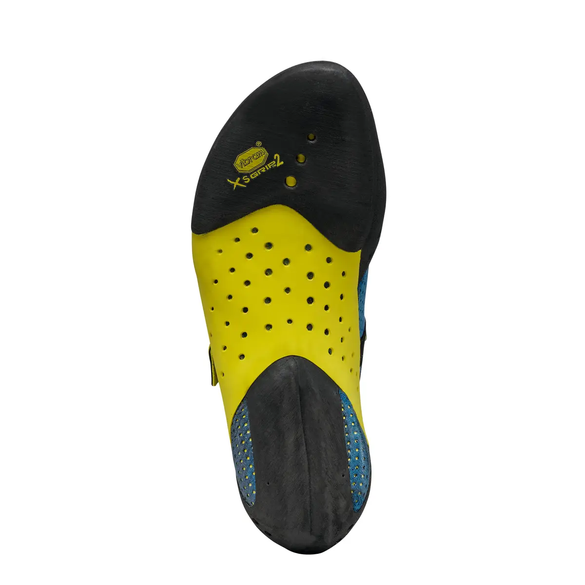 フューリアSをも上回る軽さとしなやかさの超ソフトモデル。シューズ全体に施されたパンチ穴によりソックスを履いたような自由な足さばきと、その名の通りの圧倒的な軽さを実現。ソールも同様に極薄のラバーとシャンクで足先感覚を追求しています。通常、しなやかさを追求すると立ち込む力が失われますが、踵から来るテンションバンドを足先にまで滑り込ませることで、踏み込む力を踵から足先までしっかりと伝達します。