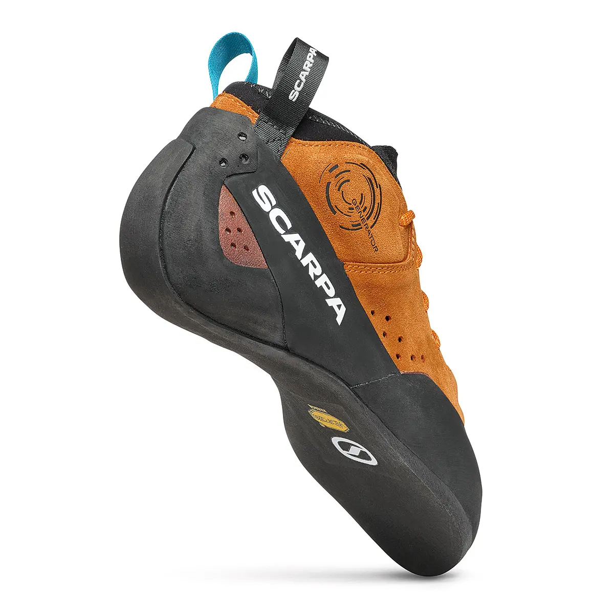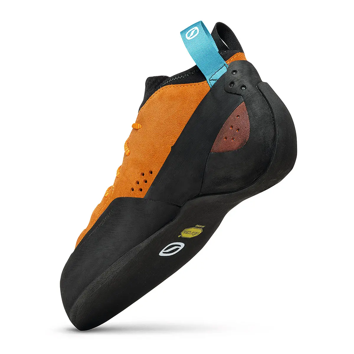 ビッグウォールやクラッククライミング、アルパインクライミングなどに最適なミドルカットシューズ。厚手の2.0mmスエード製アッパーに、足首を保護するパッドを内蔵するなど、酷使に耐える堅牢なつくりです。爪先やヒールを除くアッパー内側にはエラスチック生地をライニングし、ソックスのようなフィットを実現。ストレートで広めの足型と相まって長時間履き続けても疲労が少なく、厚めのソールながら爪先の接地感を適度に持たせているのが魅力です。