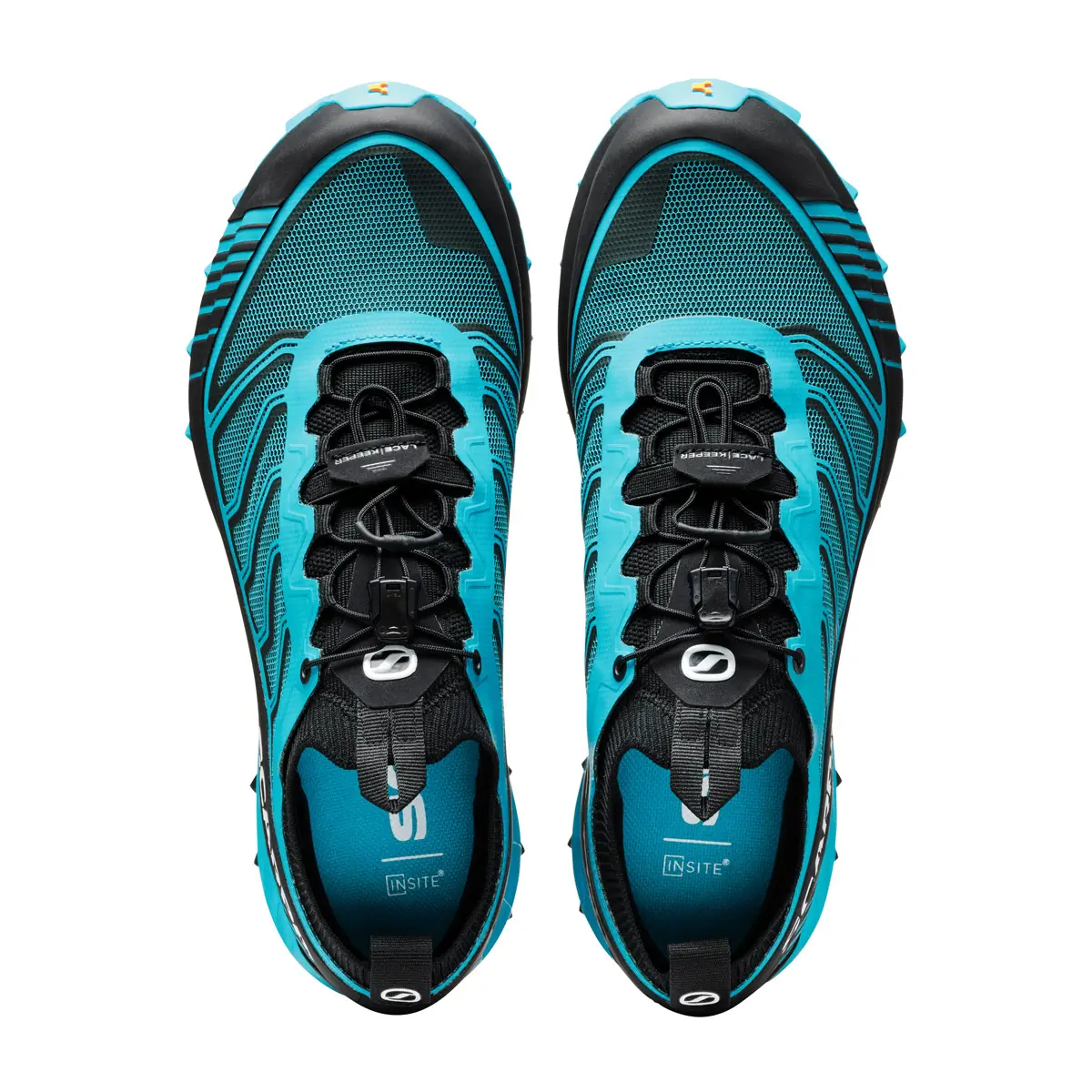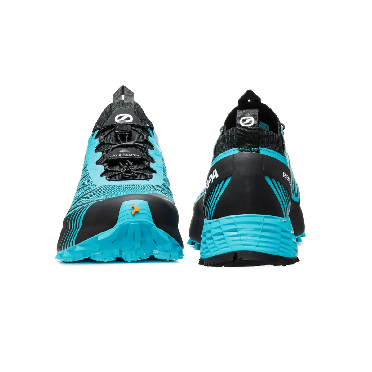 テクニカルな山岳地帯を走るために生まれたトレイルランニングシューズ。「RIBELLE」の名前が示す通り、マウンテンブーツの設計思想を取り込んだ構造が特徴です。外周を覆うランドラバーは耐久性だけでなく、シューズの剛性を高める構造材としても機能。二つの役割を兼ね備えた構造の恩恵により、険しい山岳地帯に対応するモデルでありながら285g(#42、片足)の重量を実現しています。また前世代機からアッパー、アウトソールが進化。フィット感が向上し、あらゆる地形で優れたトラクションを発揮します。