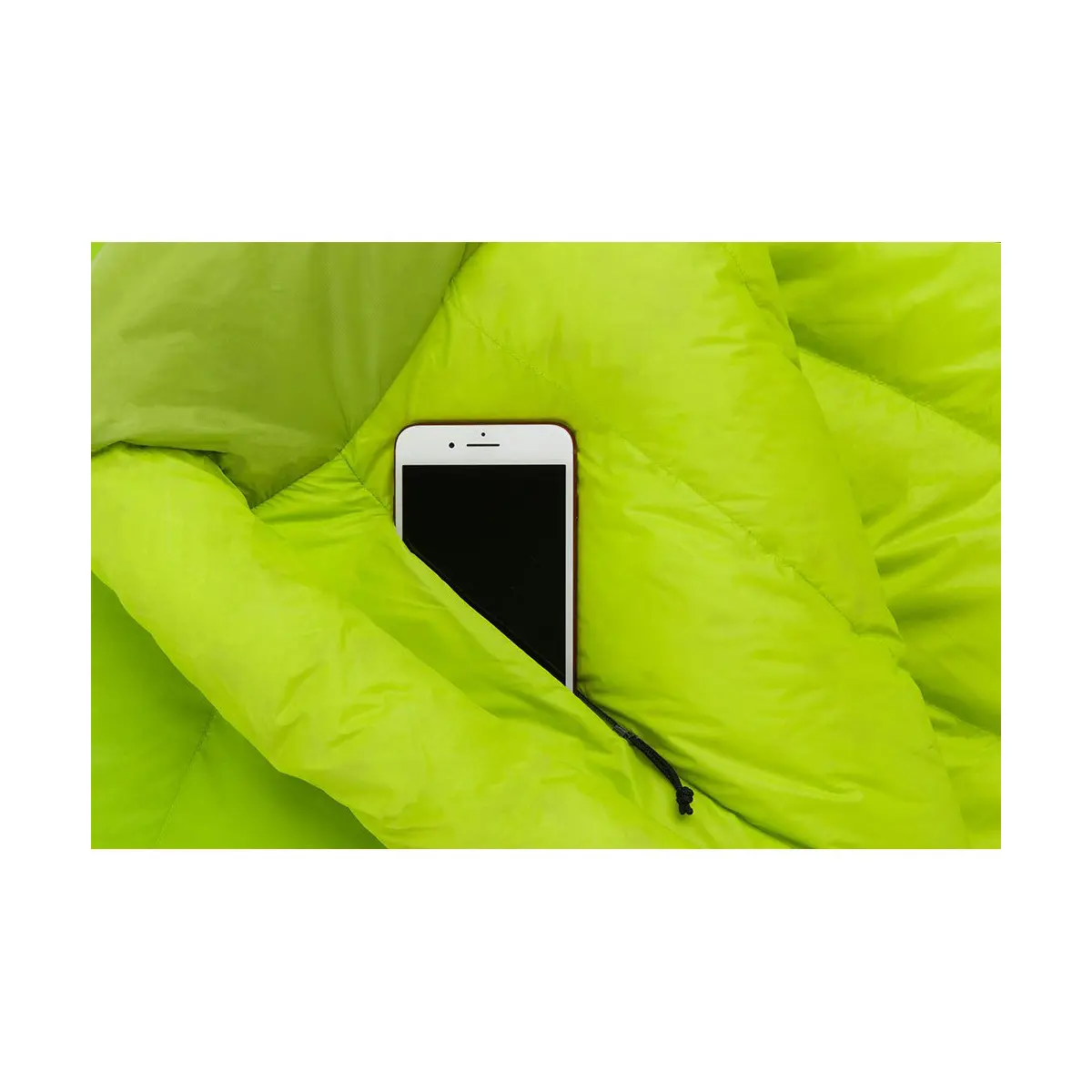 身体の形状を考えたフットボックス設計で、ダウンのロフトを稼いで足もとからの冷えを抑制 - 貴重品を入れられる大型の内部セキュリティポケット