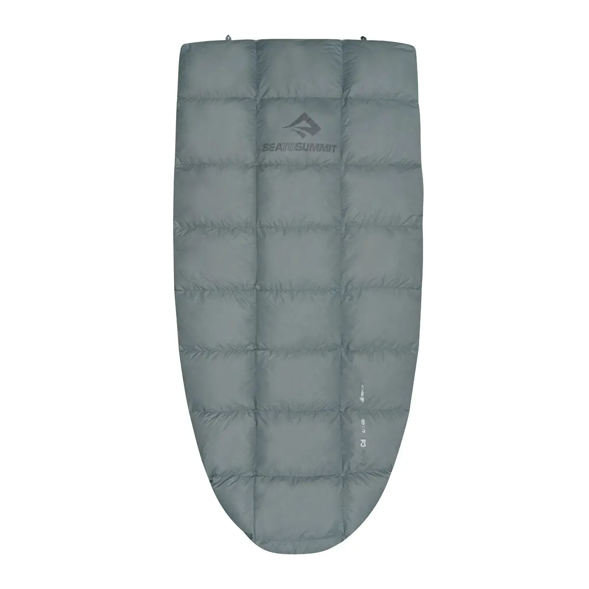 温かい時期向けの軽量ダウンキルトとして。寒冷時には手持ちのスリーピングバッグのブーストとして。シンダーは1年中活躍します。シートゥサミット社製のスリーピングバッグの上にスナップボタンやループで固定できるキルトロックシステムを搭載。スリーピングバッグを包み込むようにキルトを被せることができます。
