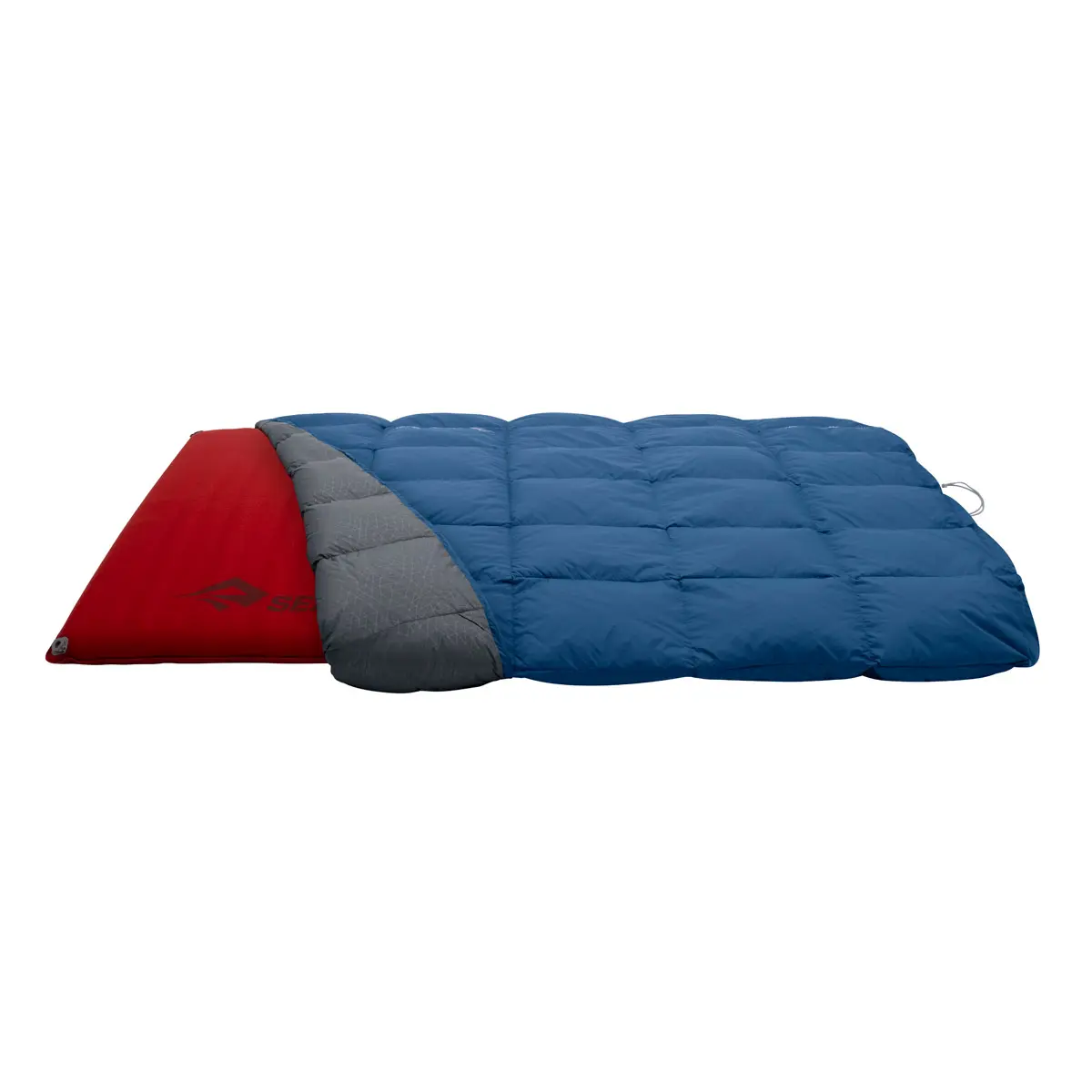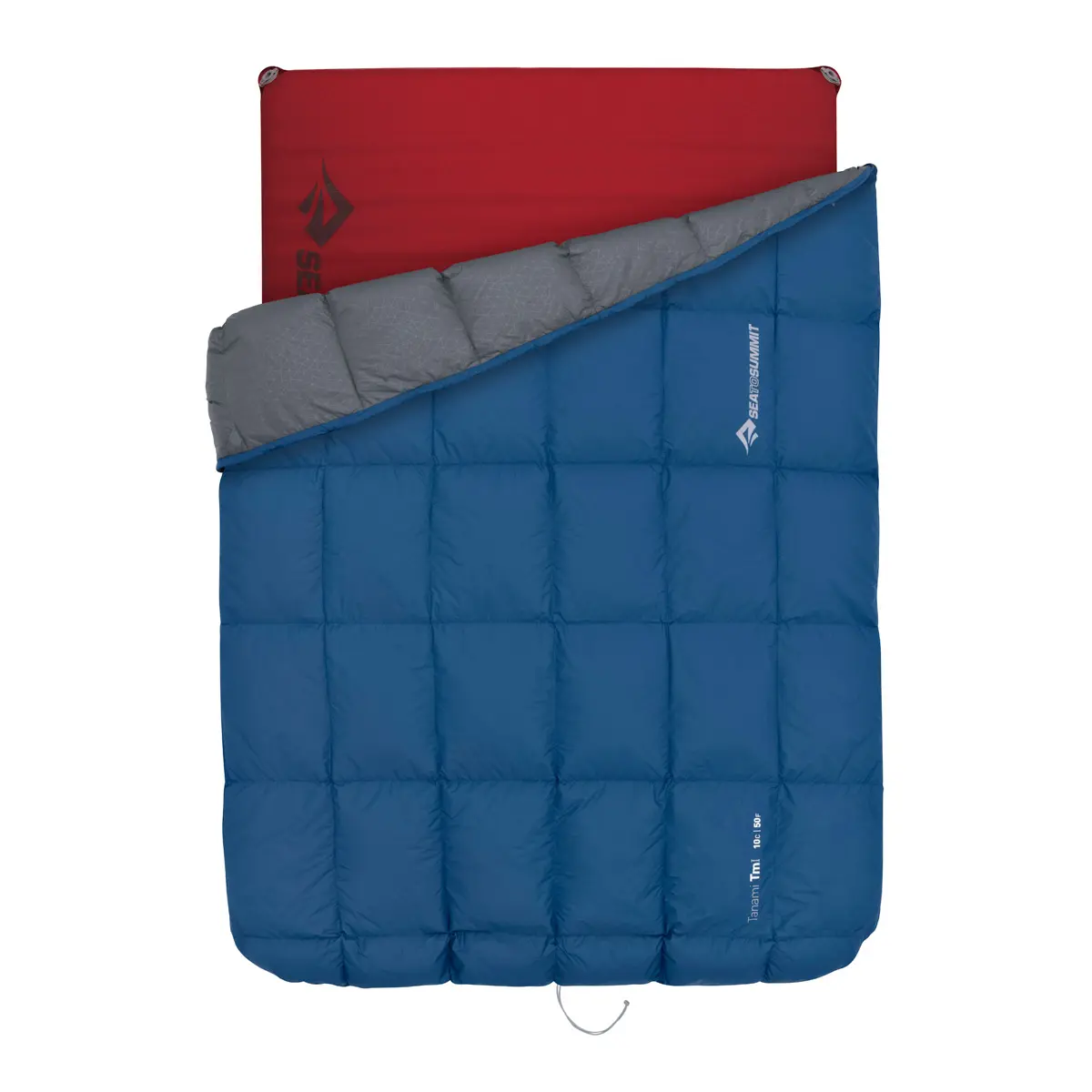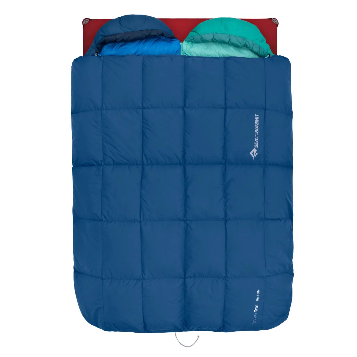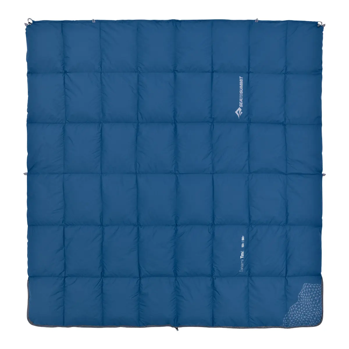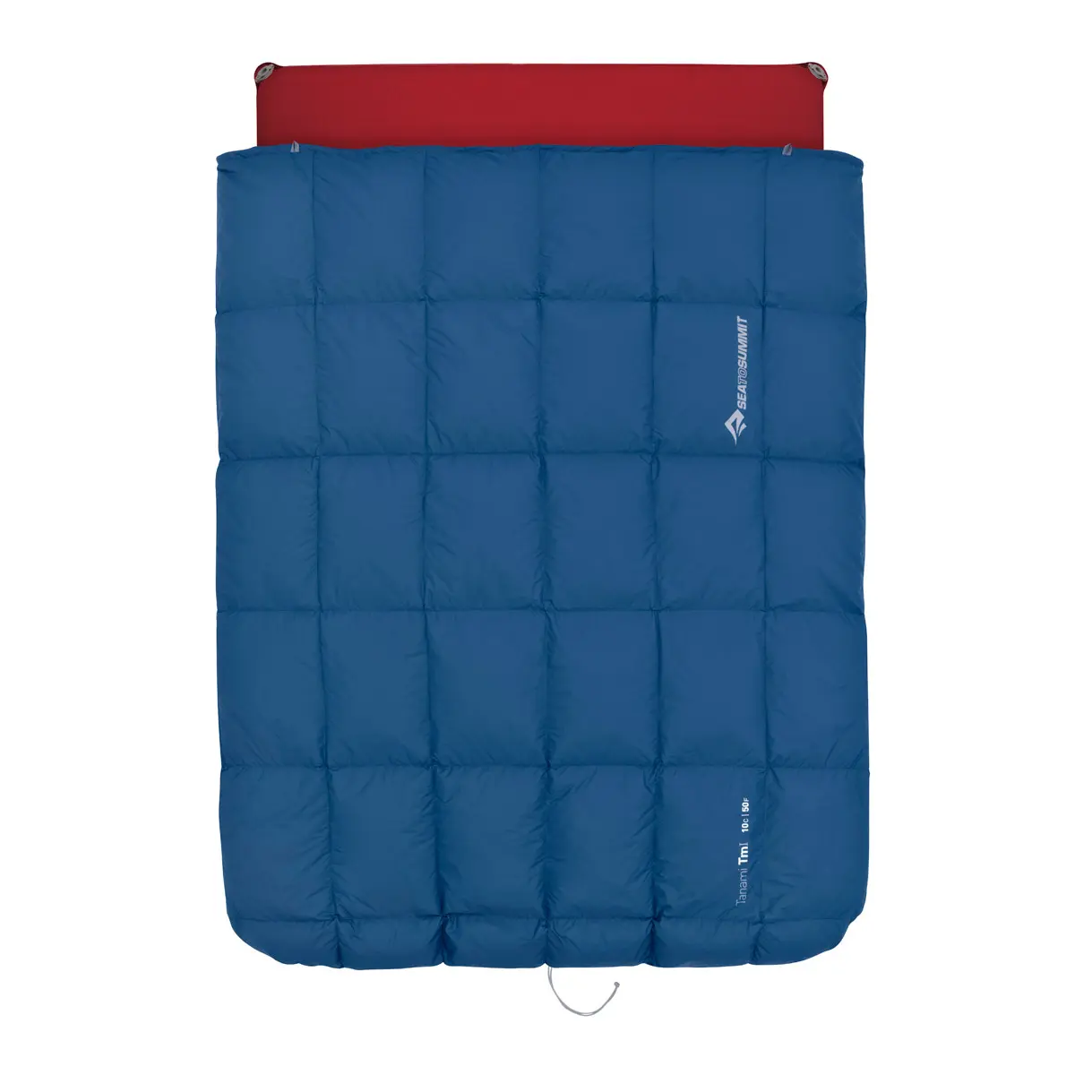 クイーンサイズのタナマイTmは、外でもご自宅の寝室の快適さを忘れたくない方にぴったり。比較的温かい時期に適したタナマイTmIは、2人での夏のキャンプにも我が家の寝具を持ち出したような快適さを感じることができます。ボリュームのある750+フィルパワー・ウルトラライトダウンを封入し、かけ布団と同じように使えます。生地は快適、丈夫で、使用サイズと比べると大変コンパクトに収納可能です。シートゥサミット社製のスリーピングバッグの上にスナップボタンやループで固定できるキルトロックシステムを搭載。スリーピングバッグを包み込むようにキルトを被せることができます。