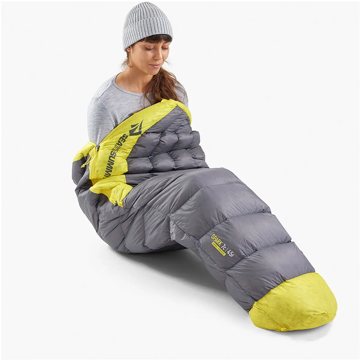 スパークは軽量コンパクトさと優れた保温性を両立させた最上位シリーズです。ウィメンズモデルは女性の身体にあわせて肩周りは狭めに腰回りは広めに再設計。また単位面積あたりの中綿量も同クラスのユニセックスモデルと比べて大幅に増量し、保温性能を高めています。撥水トリートメントされた850+フィルパワーのウルトラドライプレミアムグースダウンは、ウェットコンディションでも最大の保温性を発揮。シェルとライニングは極薄の10デニール撥水ナイロン製で軽量化。結露したテント壁面に接するフードとフットボックスには防水透湿素材を使用し、濡れによるダウンの性能低下を防ぎます。