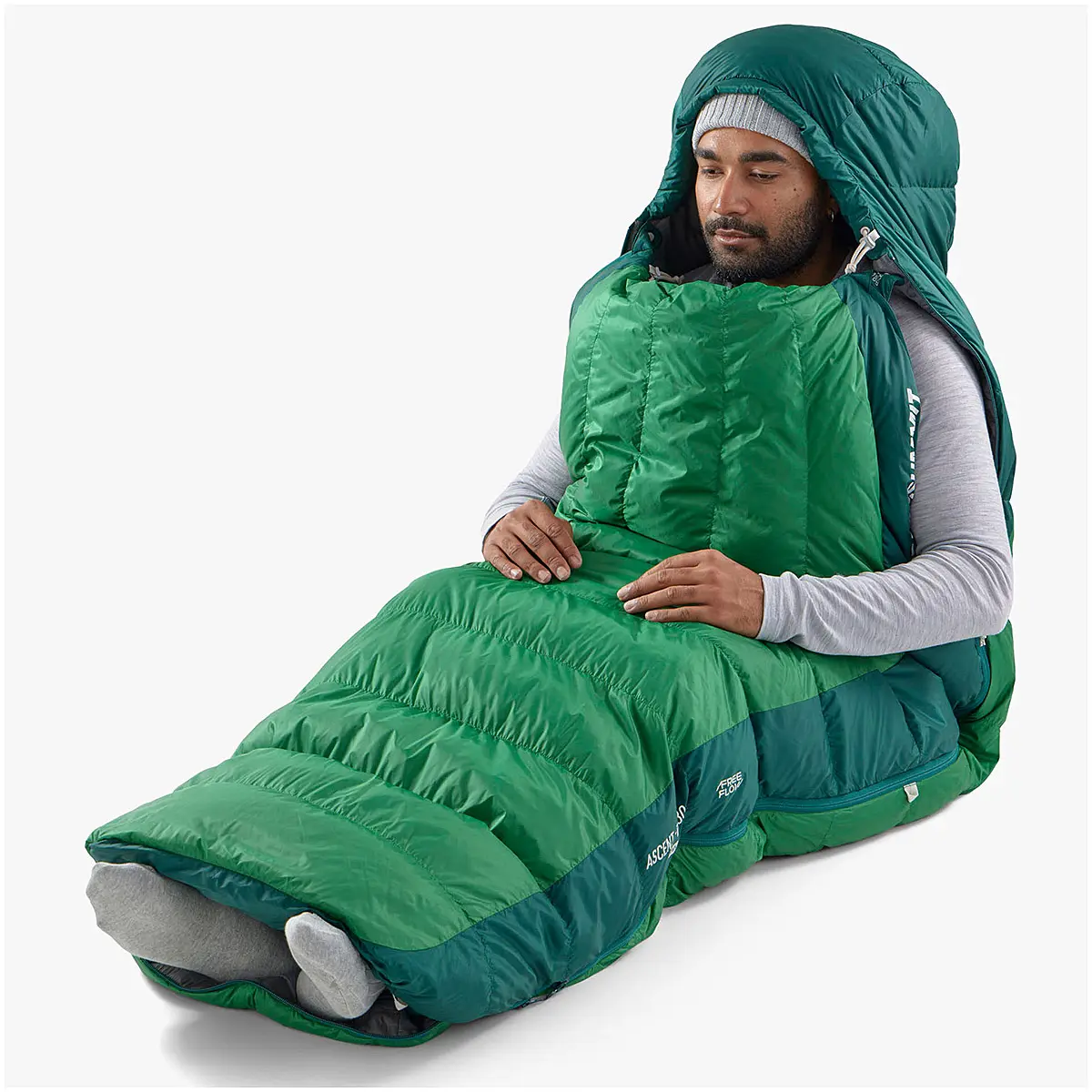 メインジッパーの反対側とフットボックスにジッパー(フリーフロージップ)を備え、幅広い温度調節や多彩なアレンジができるスリーピングバッグ。足元の幅を拡げてゆとりを持たせたリラックスマミーフィットで、登山からバックパッキング、キャンプなど多目的に使えます。