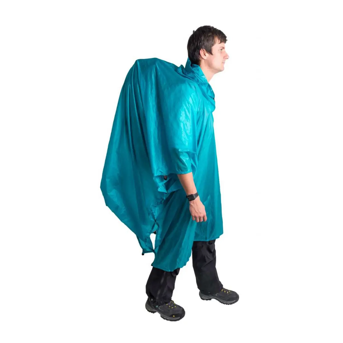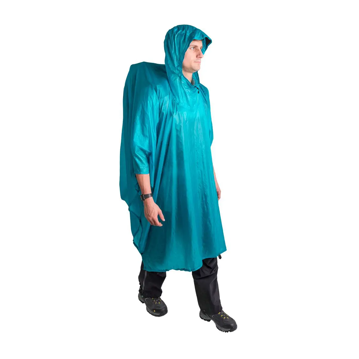 レインコート、パックカバー、グラウンドシート、そしてタープの機能がオールインワンされたポンチョ。シームテープ処理されたダブルステッチの15Dウルトラシル®ナノファブリックを採用し、暑い時期の雨天下のタープや緊急時のシェルターとしても最適です。