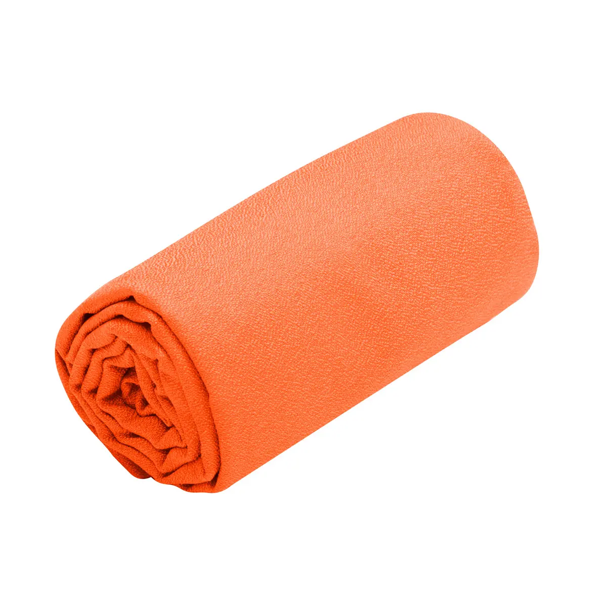 ポケットタオルより40%も軽いシリーズ最軽量タオル。収納スペースや重量を削りたい場合に適しています。マイクロファイバー製で自重の3倍の重さの水を吸収します。生地が軽いので表面積を大きくとれ、シリーズで最も速乾性の高いタオルとなりました。使用後はバックパックにかけておくだけですぐに乾きます。生地の端をレーザーカットすることで縫製を省略し、タマゴ大のサイズに収納できます。スタッフサックは無くさないようにボタンでタオルと一緒にしておくことができ、タオルを使う時は取り外すことができます。オーストラリアの大自然にインスパイアされたカラーを新たに採用しました。