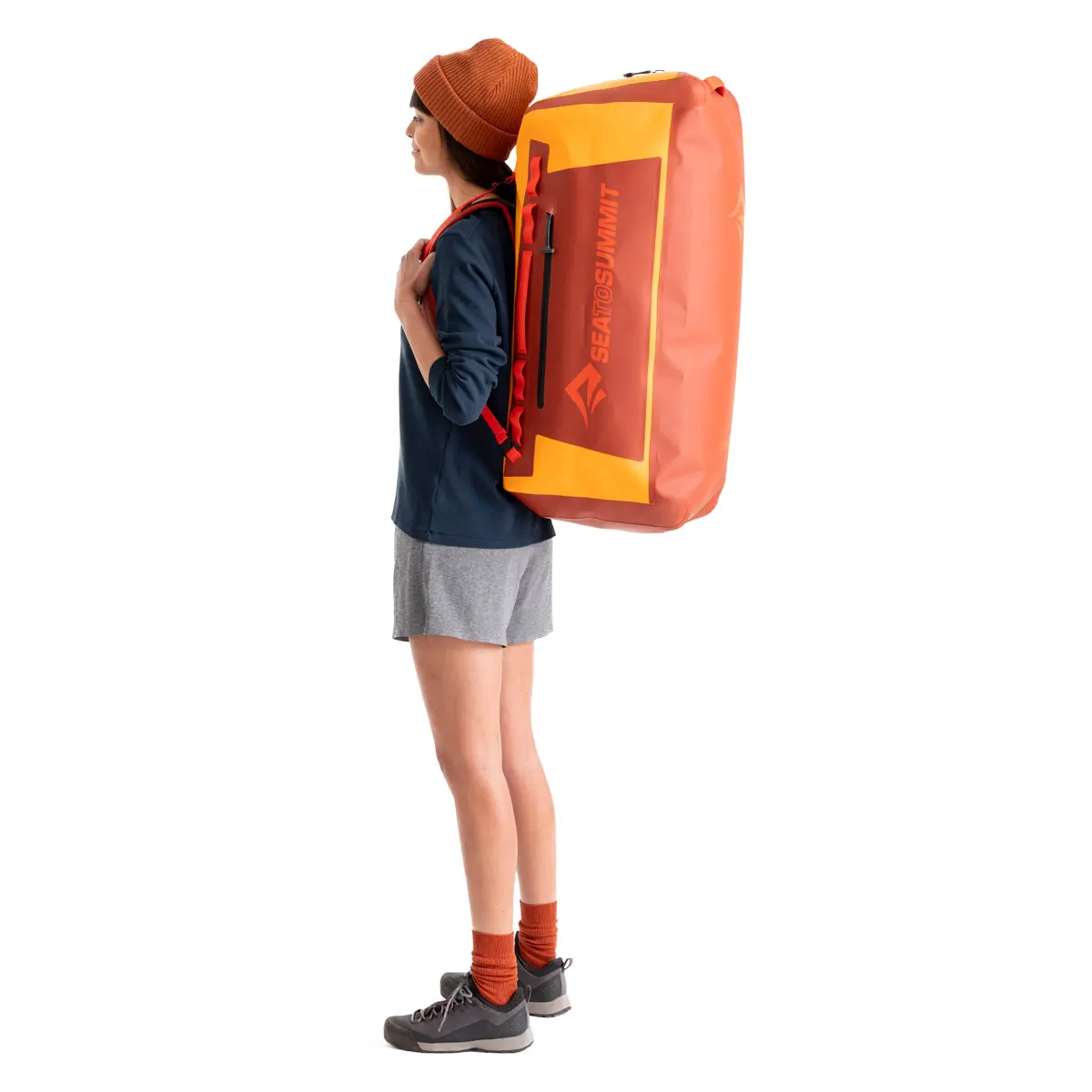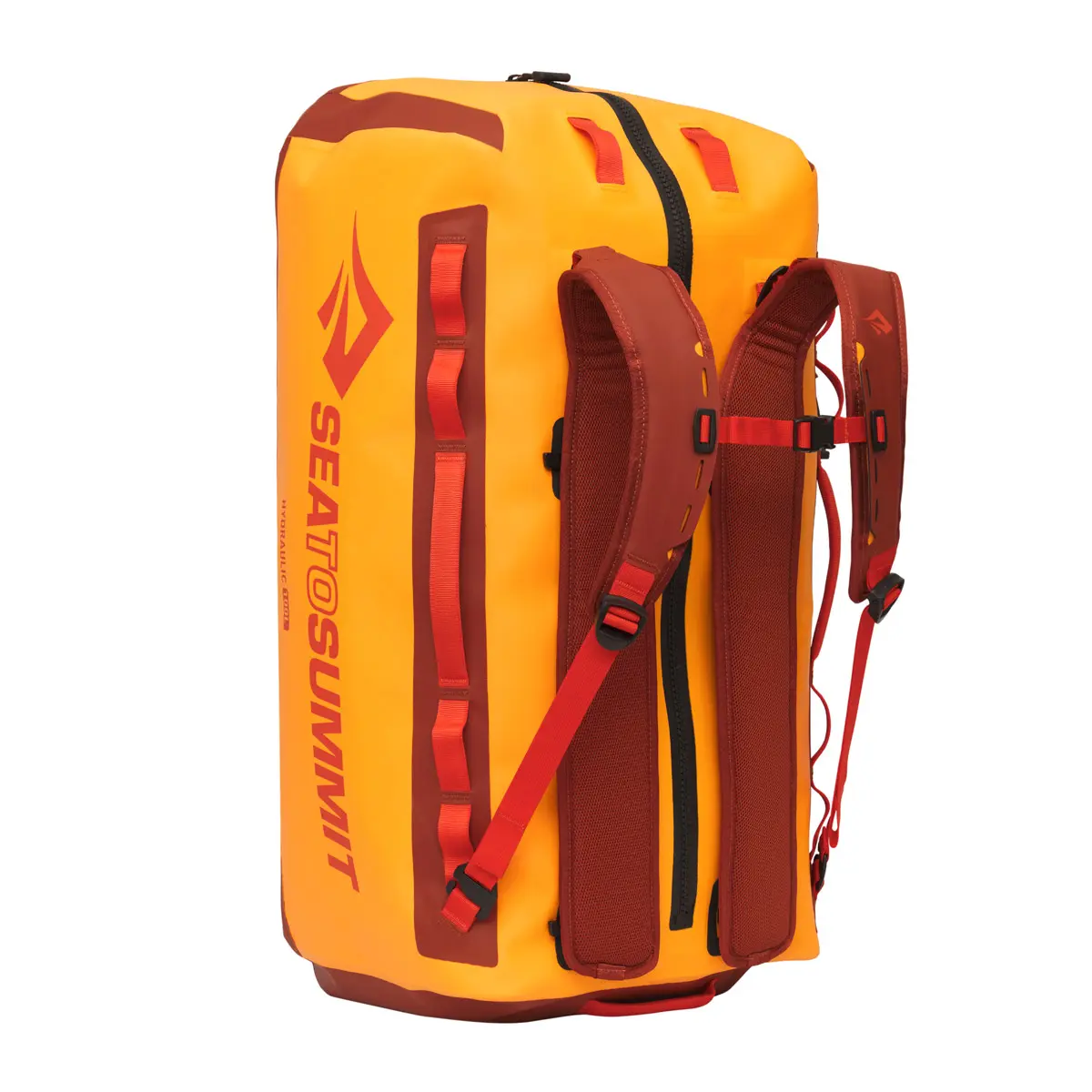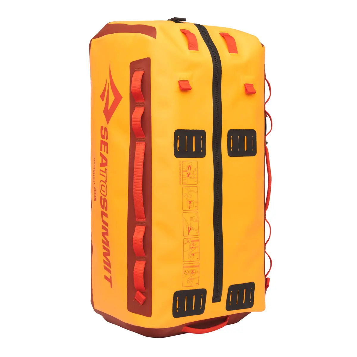 水没に耐えるダッフルスタイルのドライバックパック。厳しい環境に耐えるタフな造りです。水圧試験をパスするファスナーのTIZIP®マスターシールを採用し、極厚の1000D高強度生地は両面をTPUラミネート。全体は溶着構造でIPX8の防水規格を満たしています。取り外しと調節が可能なショルダーハーネスは、重い荷物でも身体の負担を軽減し、積載時には確実な固定が可能です。完全な四角形ではなくあえて形状を非対称にすることで、内部へのアクセスがしやすくなっています。
