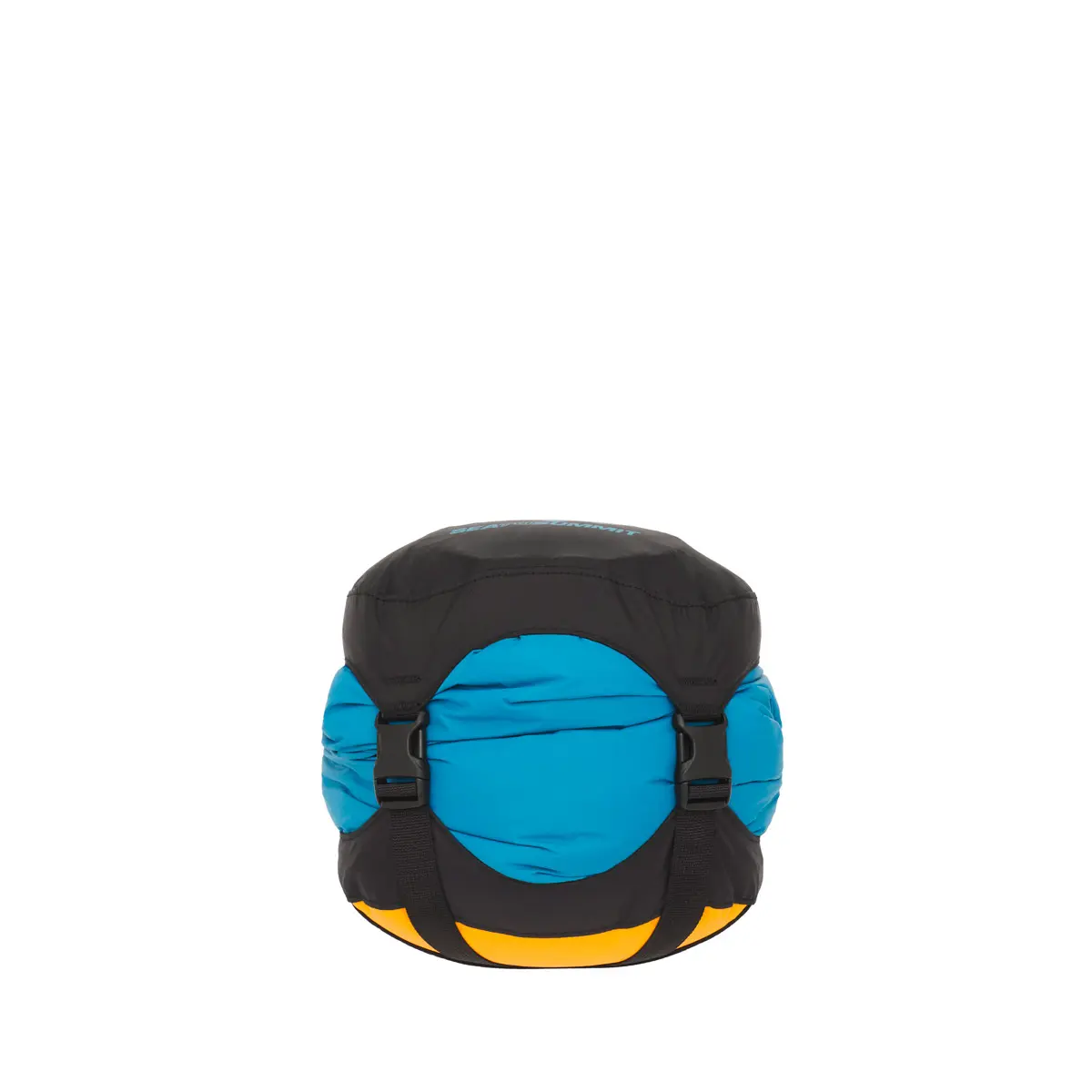 軽さ、防水性、耐久性のバランスに優れたコンプレッションバッグ。ボトムに使用されている防水透湿素材eVentファブリックは、空気は出しても水は入れない構造。バルブやストラップ締めによる圧縮ではなく、開口部をロールすることでボトムから内部の空気を逃します。防寒ウェアやスリーピングバッグなどかさばるギアを水濡れから守り、荷物をコンパクトに収納するのに最適です。ボトムはオーバル型で、平らに潰れてバックパックの内部形状にフィット。