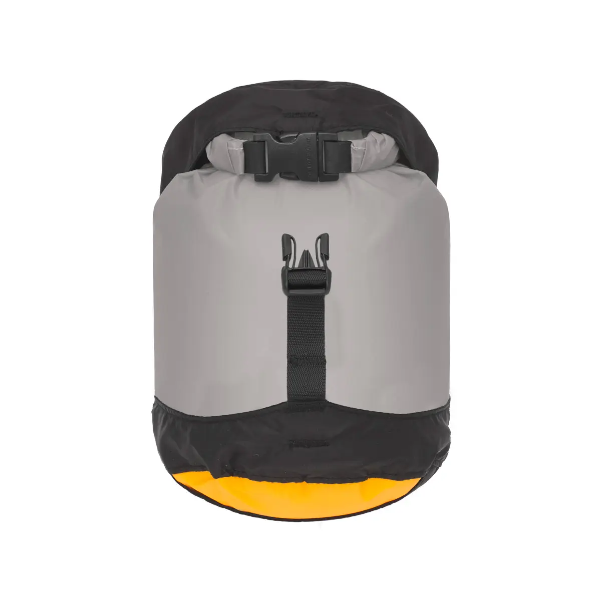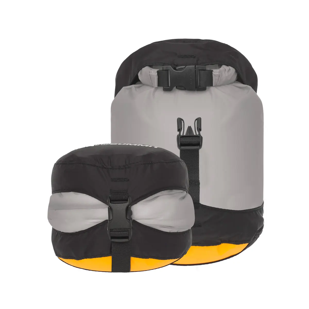コンプレッションドライサックをベースにして、本体生地に30Dウルトラシルナイロンを使用、40%も軽量化したモデル。ボトムに使用されている防水透湿素材eVentファブリックは、空気は出しても水は入れない構造。バルブやストラップ締めによる圧縮ではなく、開口部をロールすることでボトムから内部の空気を逃します。防寒ウェアやスリーピングバッグなどかさばるギアを水濡れから守り、荷物をコンパクトに収納するのに最適です。ボトムはオーバル型で、平らに潰れてバックパックの内部形状にフィット。