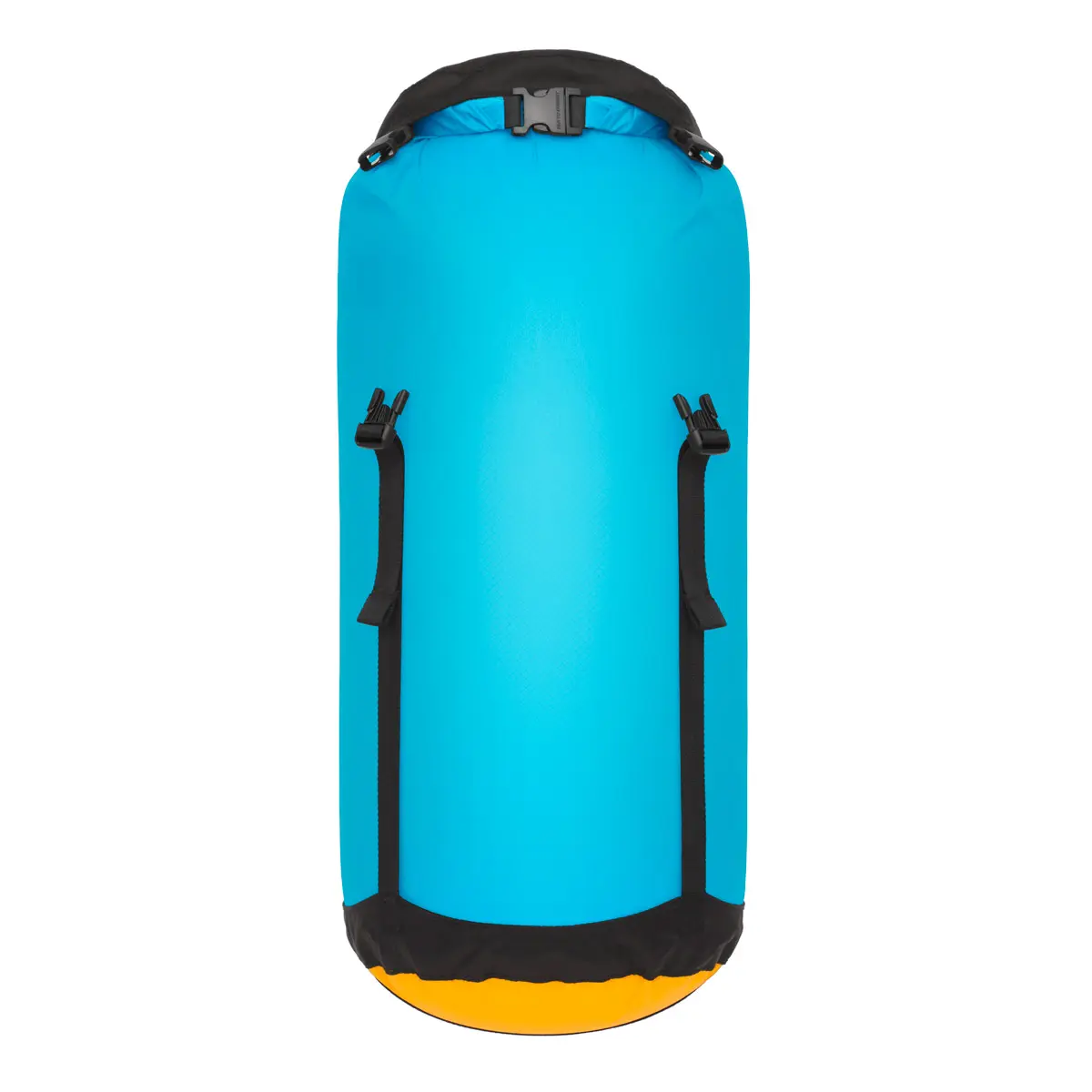 コンプレッションドライサックをベースにして、本体生地に30Dウルトラシルナイロンを使用、40%も軽量化したモデル。ボトムに使用されている防水透湿素材eVentファブリックは、空気は出しても水は入れない構造。バルブやストラップ締めによる圧縮ではなく、開口部をロールすることでボトムから内部の空気を逃します。防寒ウェアやスリーピングバッグなどかさばるギアを水濡れから守り、荷物をコンパクトに収納するのに最適です。ボトムはオーバル型で、平らに潰れてバックパックの内部形状にフィット。