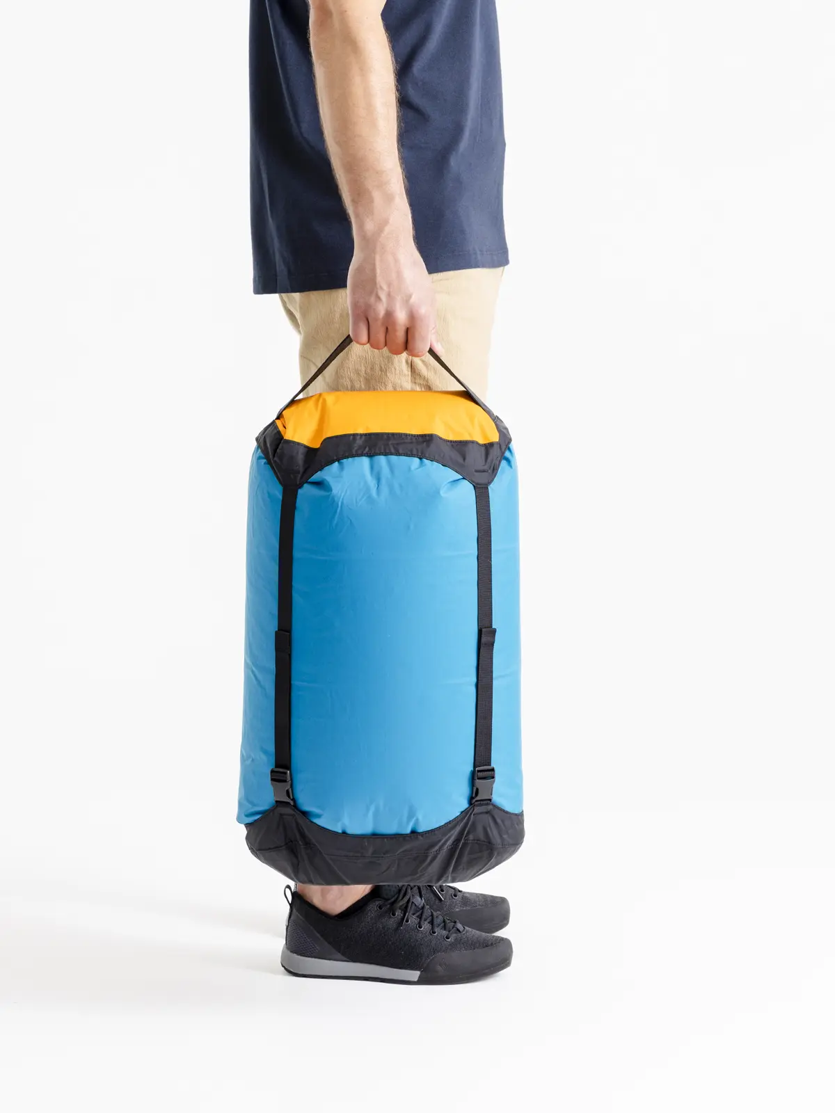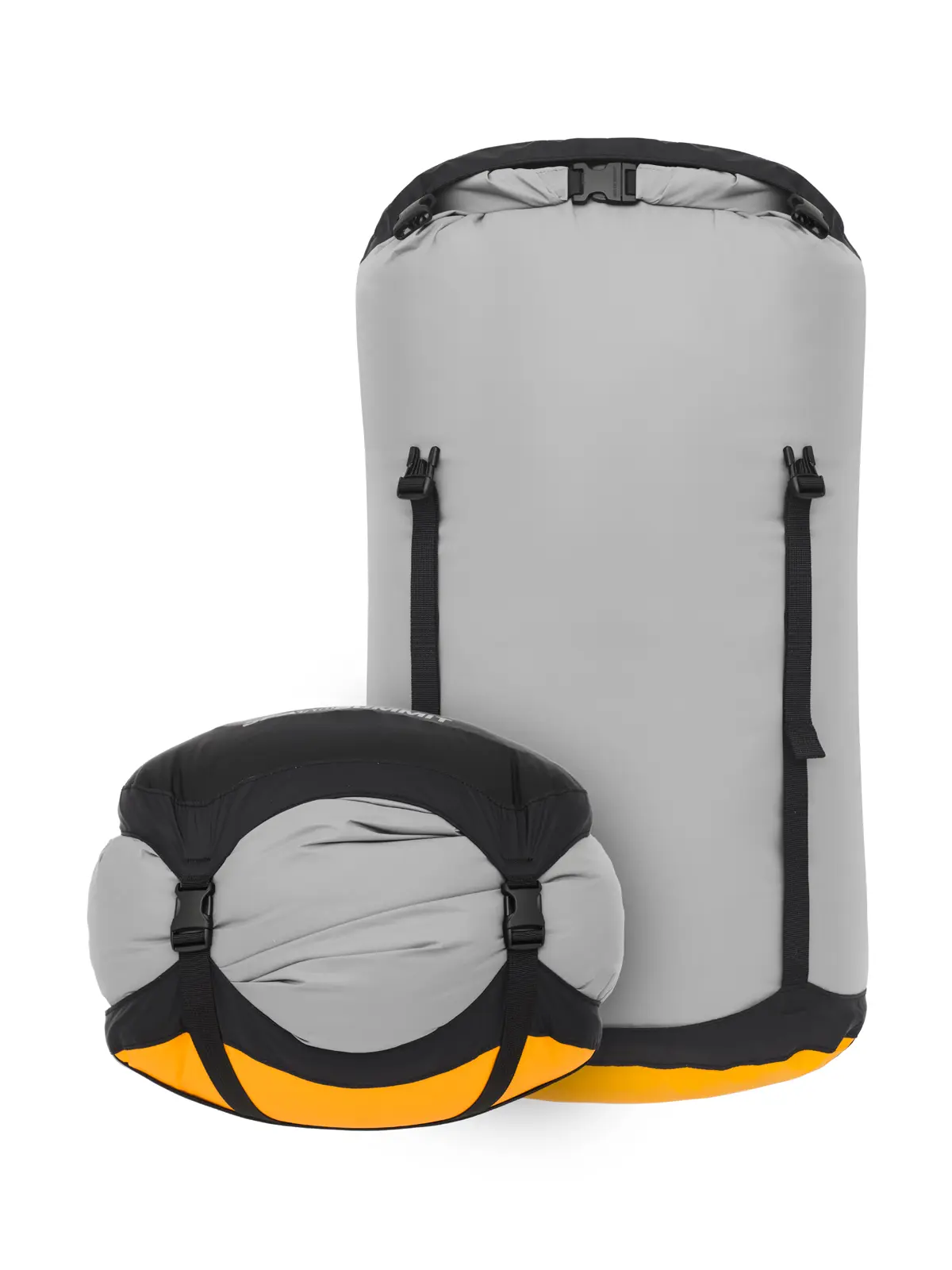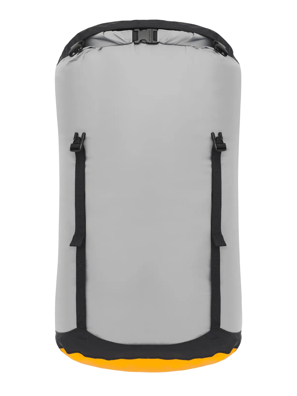 軽さ、防水性、耐久性のバランスに優れたコンプレッションバッグ。ボトムに使用されている防水透湿素材eVentファブリックは、空気は出しても水は通さない構造。バルブやストラップ締めによる圧縮ではなく、開口部をロールすることでボトムから内部の空気を逃します。防寒ウェアやスリーピングバッグなどかさばるギアを水濡れから守り、荷物をコンパクトに収納するのに最適。4本のストラップで、膨らみを抑えながら均等に荷物を圧縮することができます。ボトムはオーバル型で、平らに潰れてバックパックの内部形状にフィット。本体生地にはbluesign®認証の耐水圧10,000mmの70DリサイクルナイロンにPUコーティング、PFC不使用のDWR加工、二重縫製&テープシールで防水性を強化し、縫い目からの水の侵入も防ぎます。底面にはナイロン製オーバルハンドルがつき、内側は反射性の白いコーティングで、荷物が探しやすく便利です。