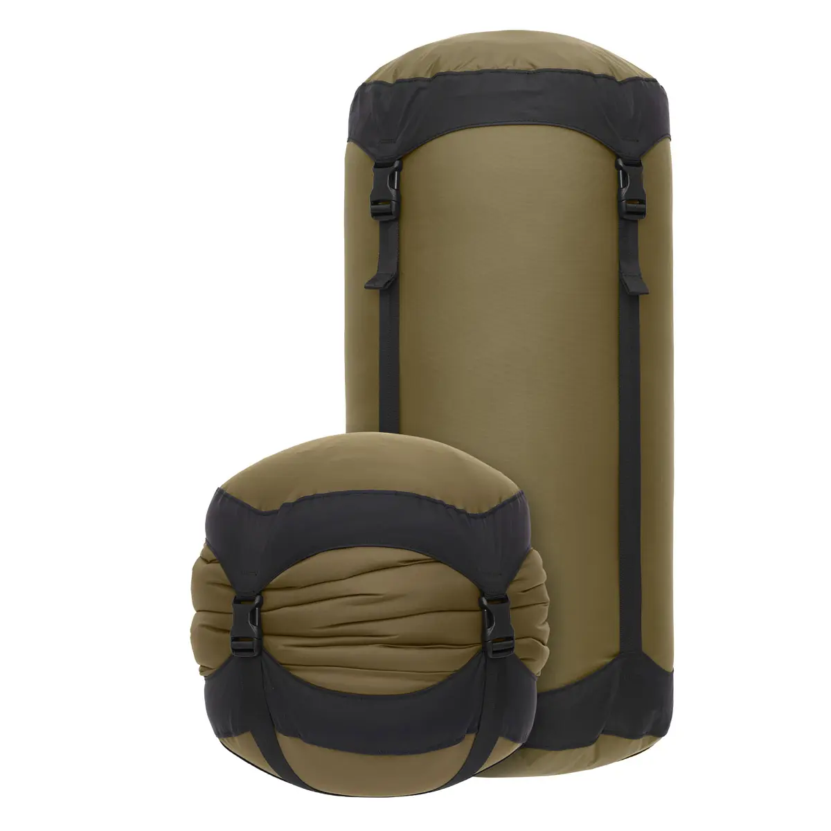 3本のストラップで荷物を圧縮することのできるコンプレッションサック。バックル付きで長めのストラップを採用しており、衣類など容量一杯まで収納してもコンパクトに圧縮します。軽量でタフな70D素材とダブルステッチに補強を加えた強靭な縫製で長く使い続けられます。