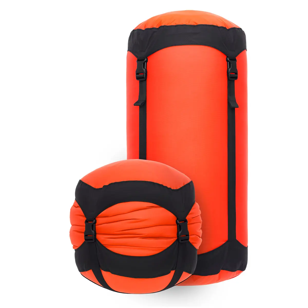 3本のストラップで荷物を圧縮することのできるコンプレッションサック。バックル付きで長めのストラップを採用しており、衣類など容量一杯まで収納してもコンパクトに圧縮します。軽量でタフな70D素材とダブルステッチに補強を加えた強靭な縫製で長く使い続けられます。