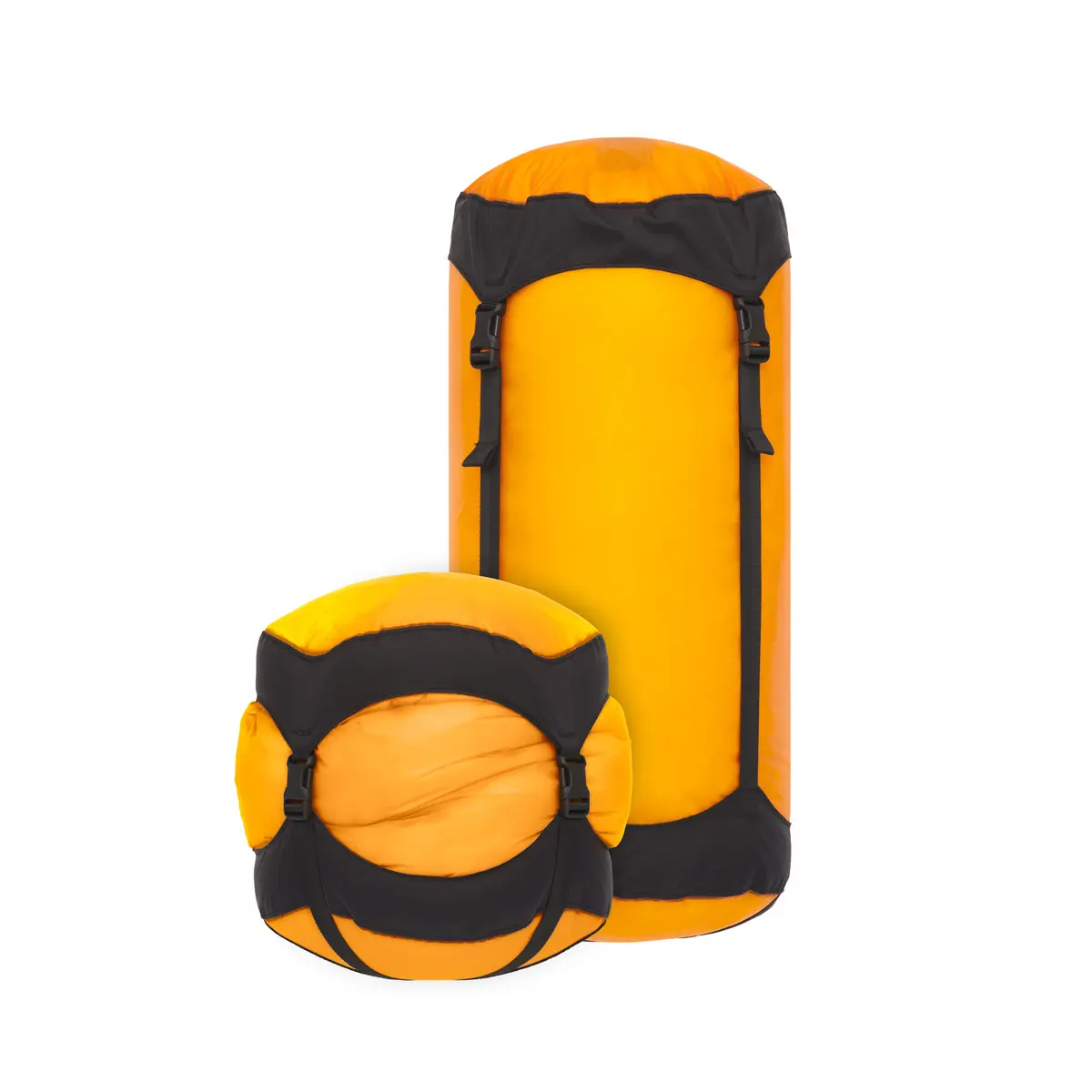 薄手の30Dウルトラシル素材を使用したコンプレッションサック。バックル付きで長めのストラップ採用しており、衣類など容量一杯まで収納してもコンパクトに圧縮します。「ギアをコンパクトに圧縮したいけれど、重量も抑えたい」ユーザーに最適。