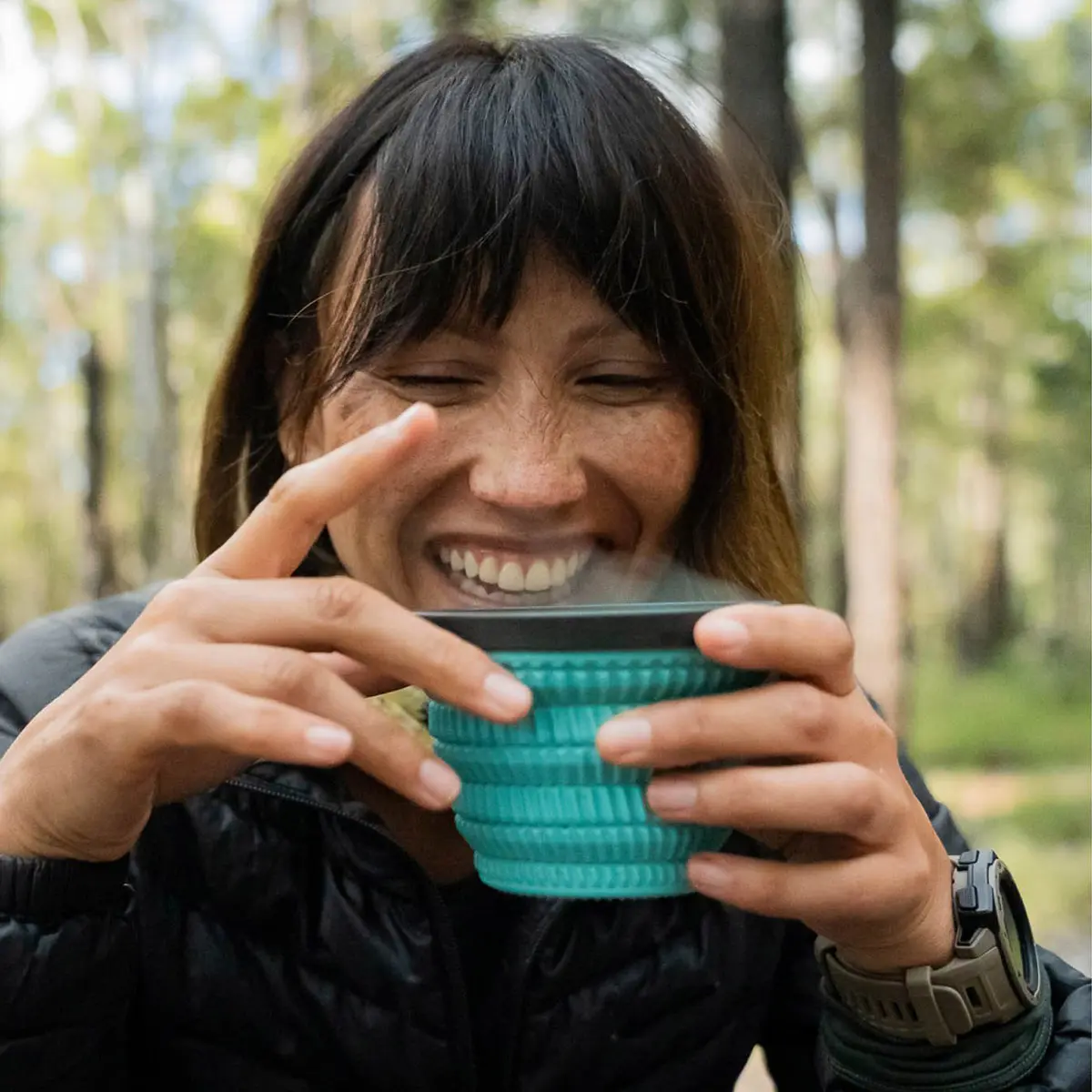 コンパクトにたためるXシリーズの使いやすさはそのままに、熱い中身でも持ちやすいフィンを備えたマグ。