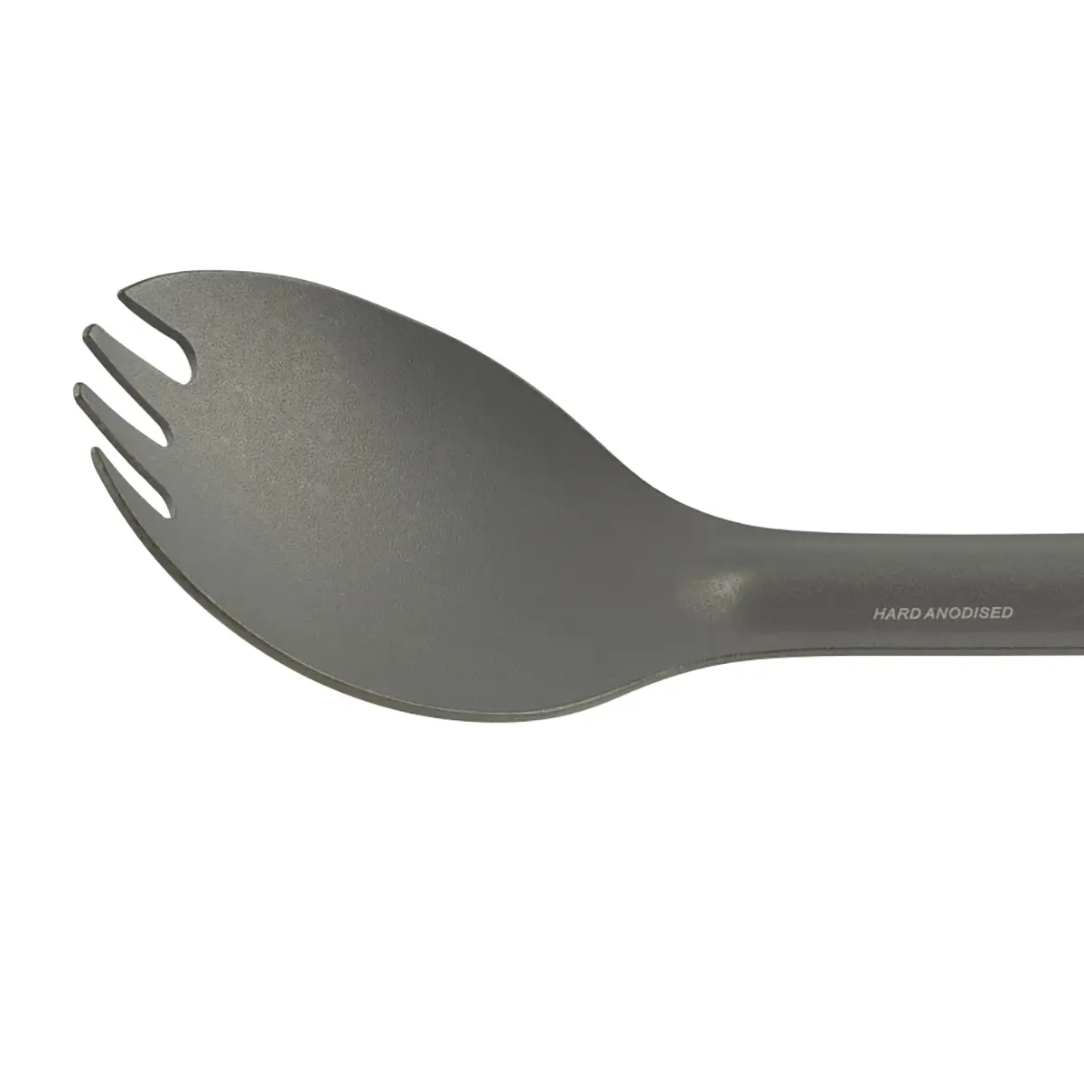アルマイト加工された航空機グレードのアルミ合金を使用した軽量、スムーズ、頑丈なカトラリー。硬質アルマイト加工が「外骨格」を形成する軽量スリムなデザイン。硬質な被膜が本体を保護し、アルミ成分が料理に溶け出しません。