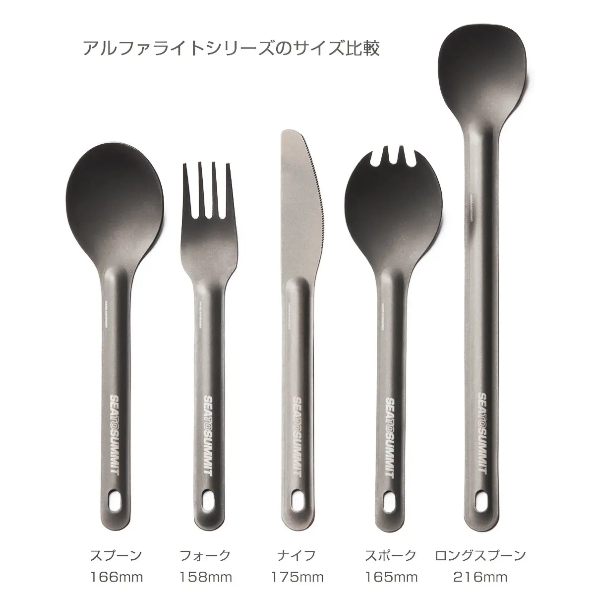 アルマイト加工された航空機グレードのアルミ合金を使用した軽量、スムーズ、頑丈なカトラリー。硬質アルマイト加工が「外骨格」を形成する軽量スリムなデザイン。硬質な被膜が本体を保護し、アルミ成分が料理に溶け出しません。