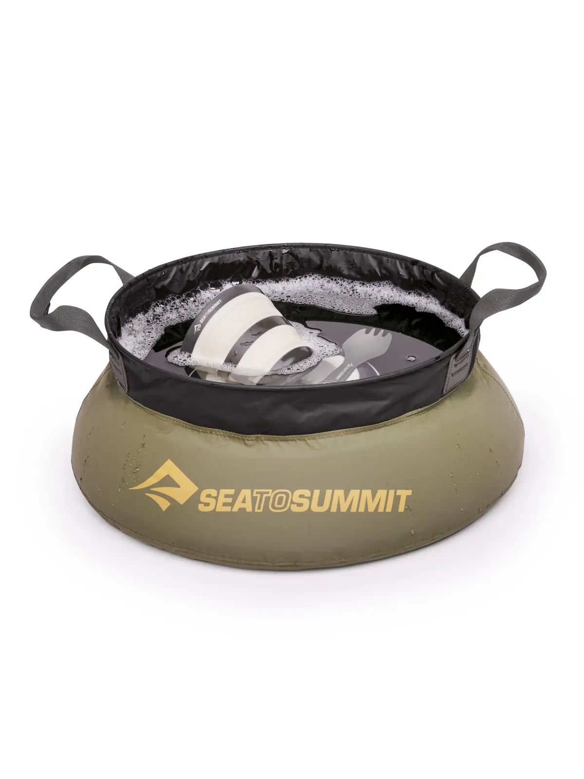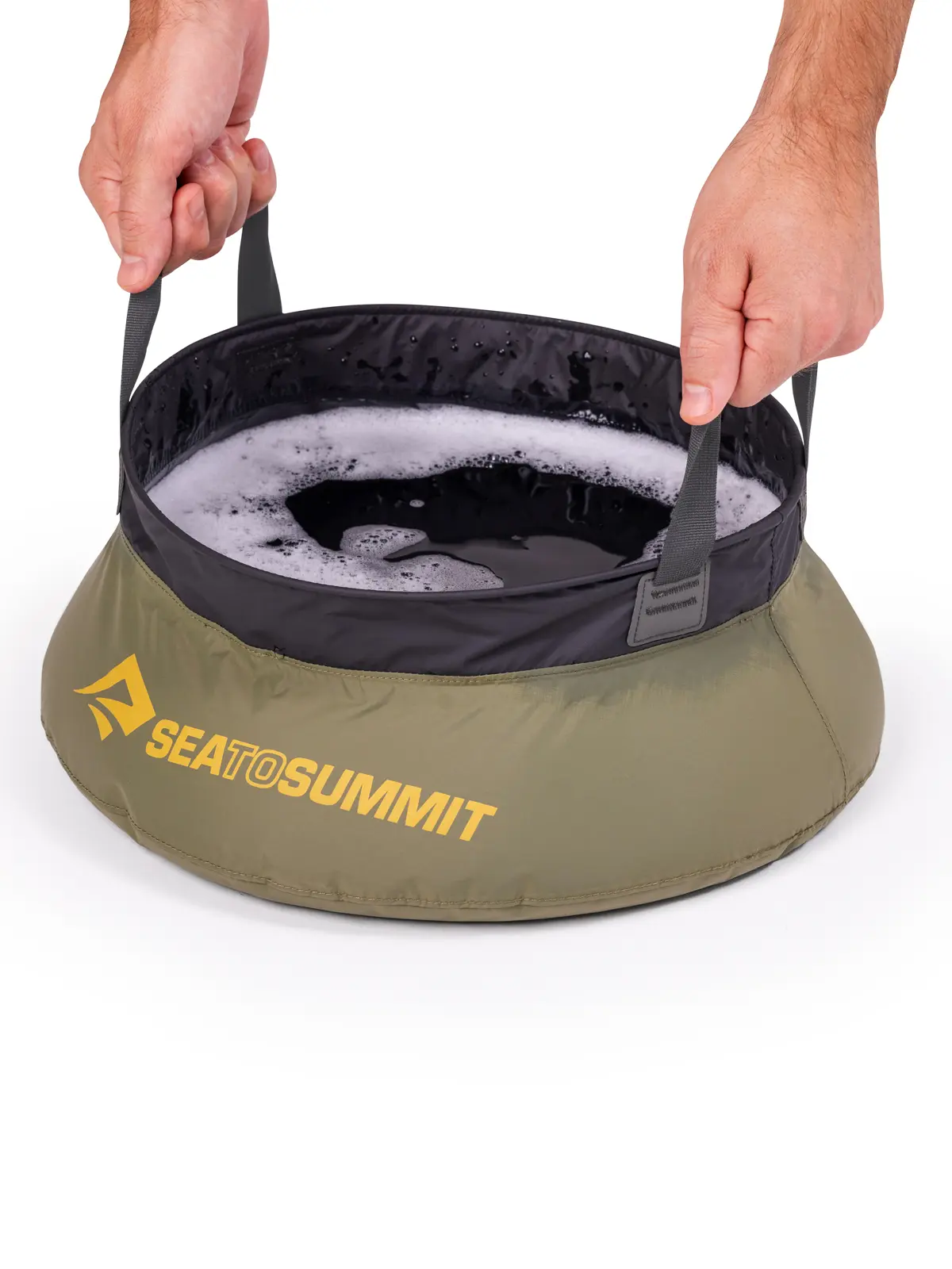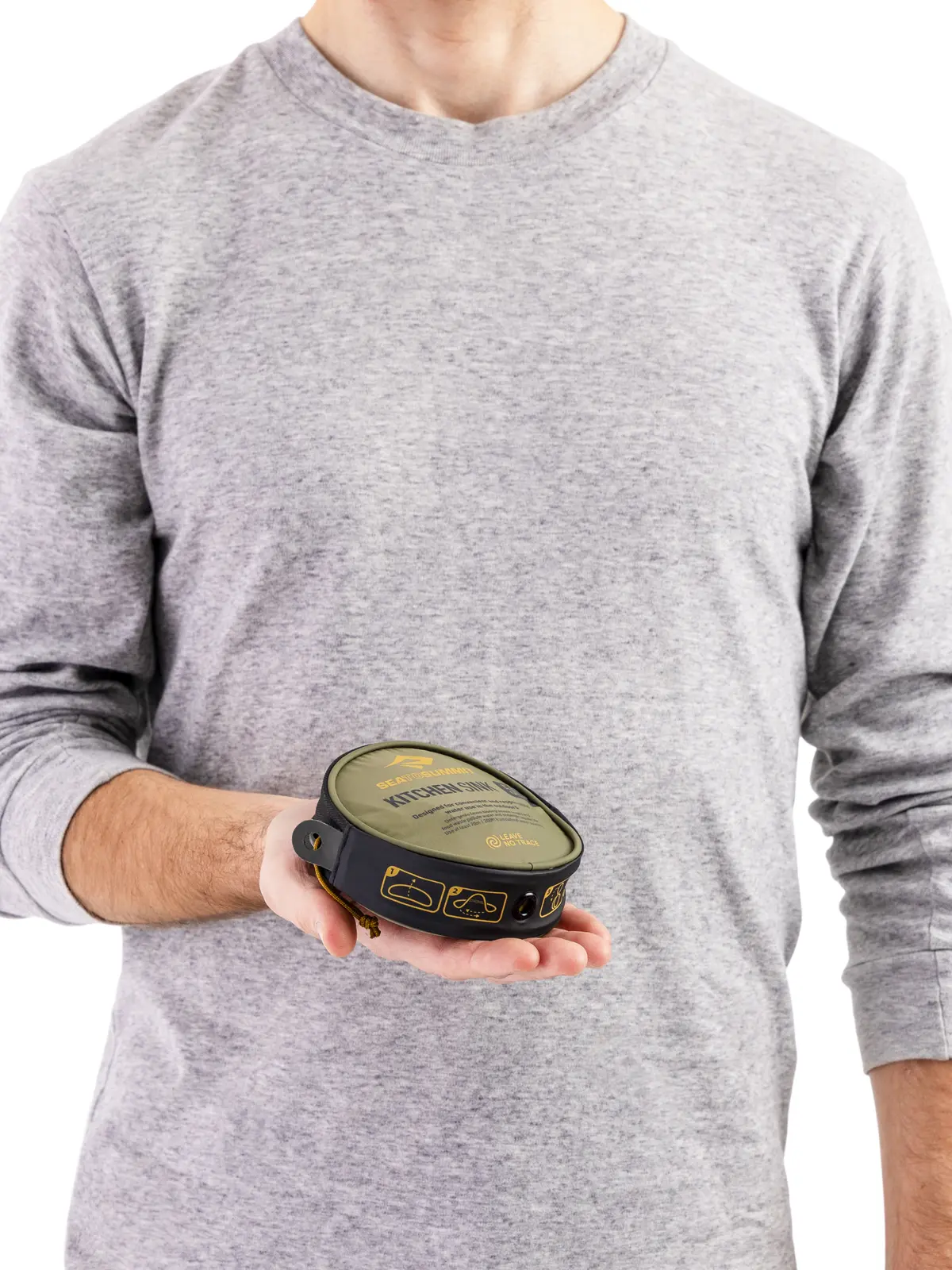 料理や皿洗い、洗面などに重宝するシンク。広い底面と開口部を補強するステンレスリングにより、水を入れても潰れにくく、キャンプでの食器洗いが簡単に行えます。本体素材は速乾性にも優れた防水70Dリサイクルナイロンを使用。非PFAS仕様で環境負荷も軽減しています。シームシール加工による完全防水構造で、水の汲み取りや運搬、食器洗いや簡易的な体の洗浄に最適です。ウェビング製キャリーハンドルつきで、キャンプサイトから離れた場所で排水が可能。使用後はポケットサイズの収納サックに折りたたんでコンパクトに携行できます。