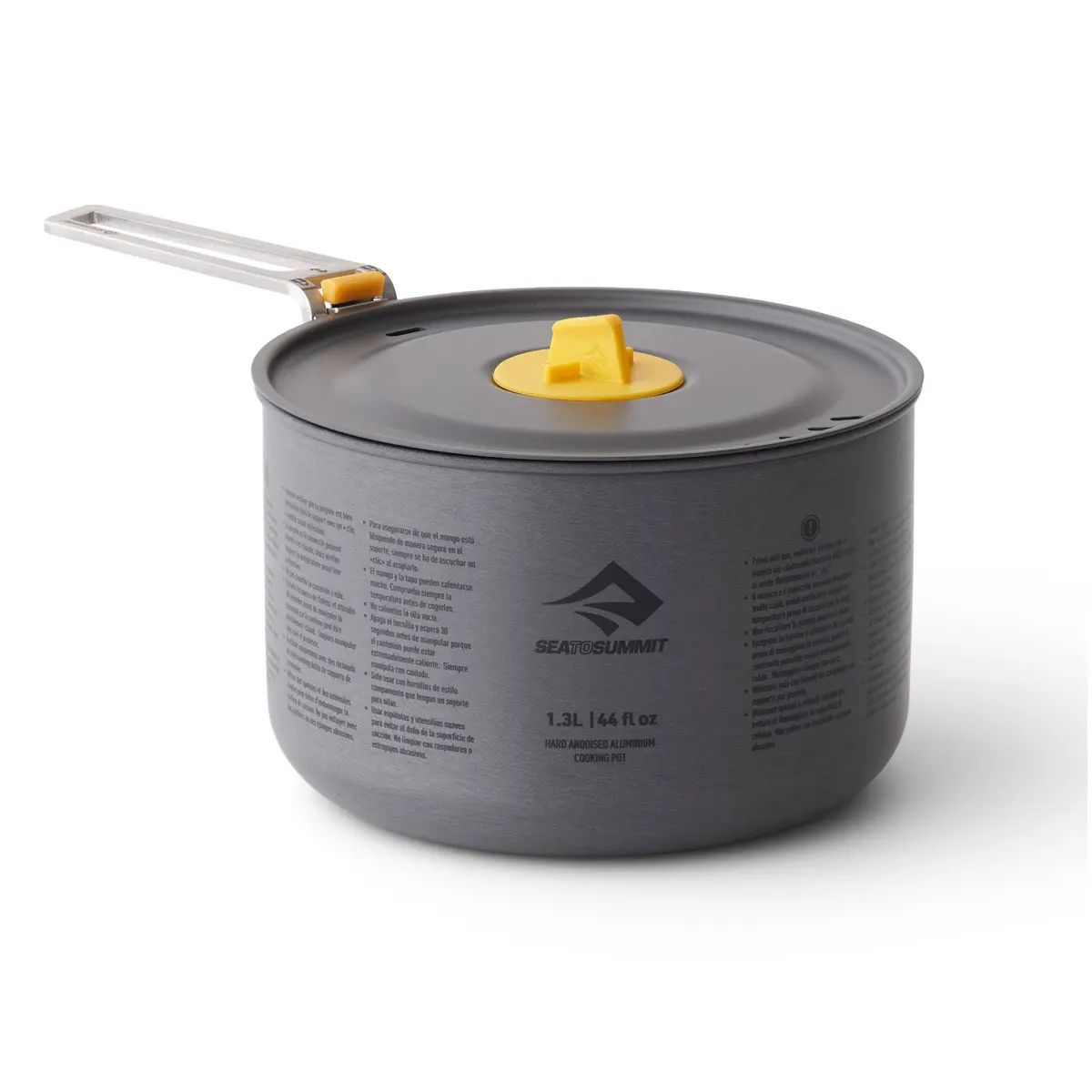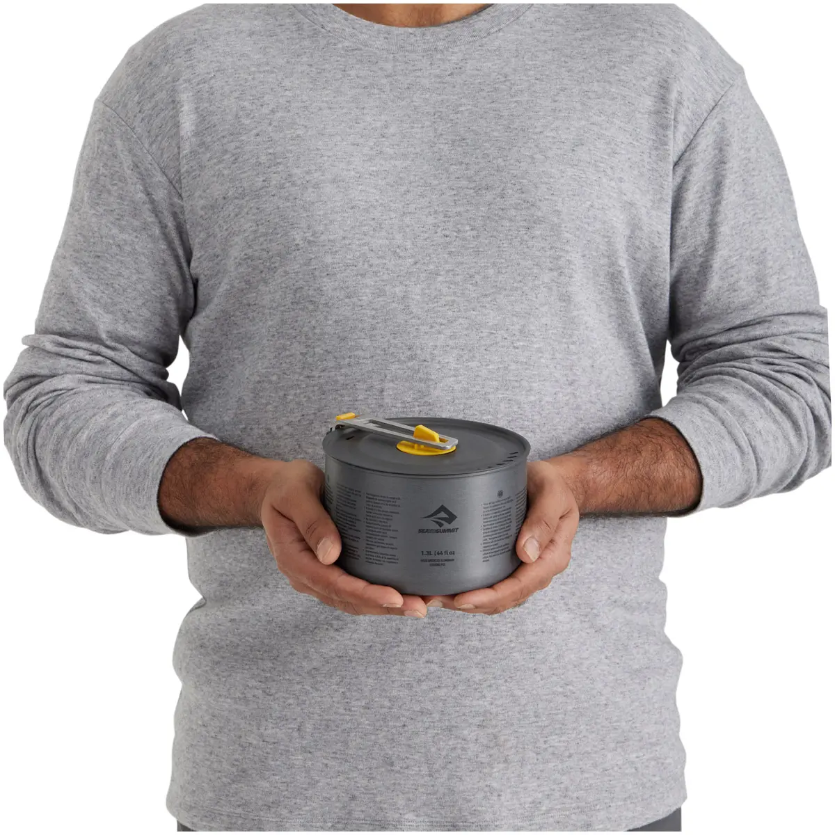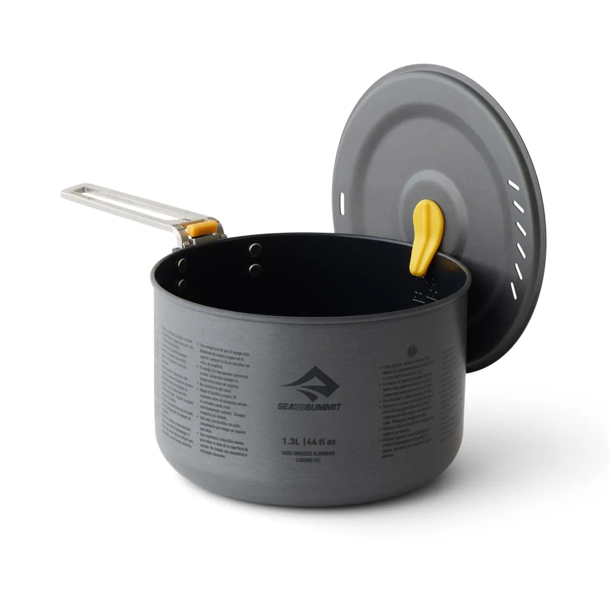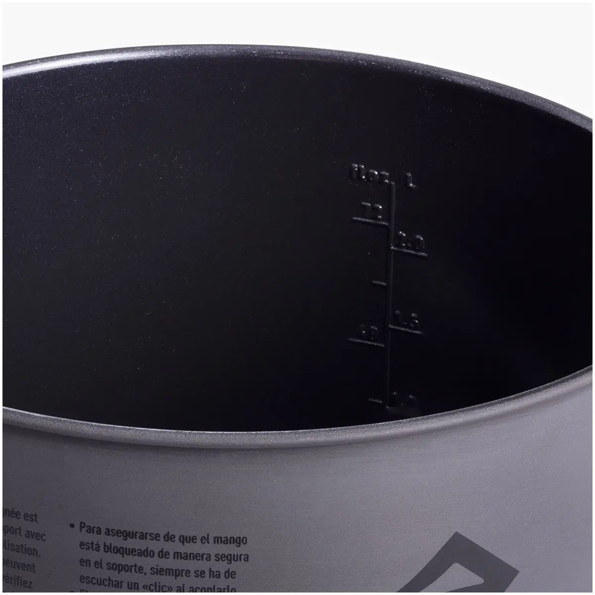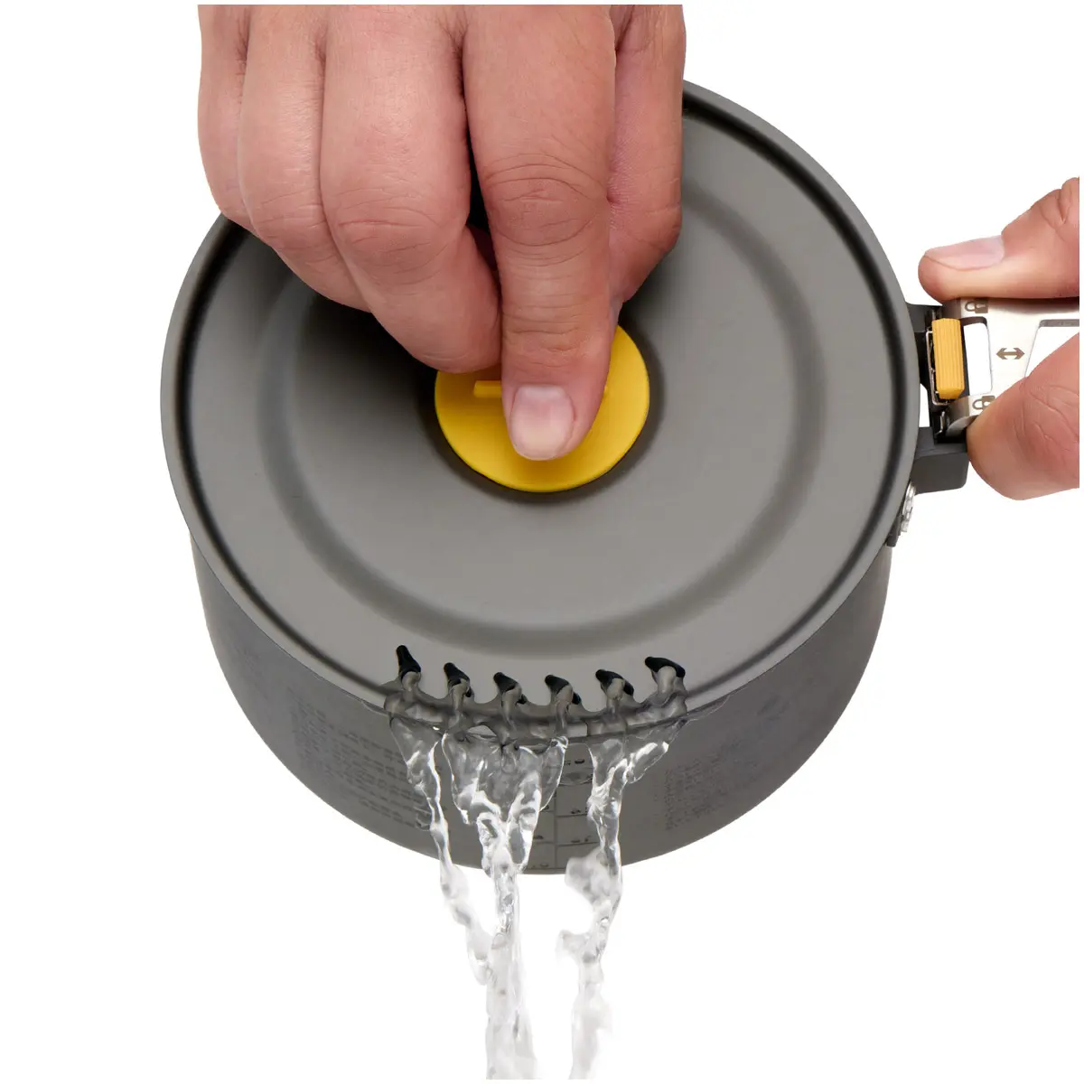 フロンティアULポットは、ハードアナダイズド加工された丈夫で軽量なアルミ合金製ポット。2025年は1.3リットル用のクリックセーフハンドルが短くなりました。ハンドルは使用時には確実にロックし、運搬時には反転させてコンパクトに収納できます。滑らかなセラミックコーティングでノンスティック加工が施され、キズや焦げ付きを防ぎます。