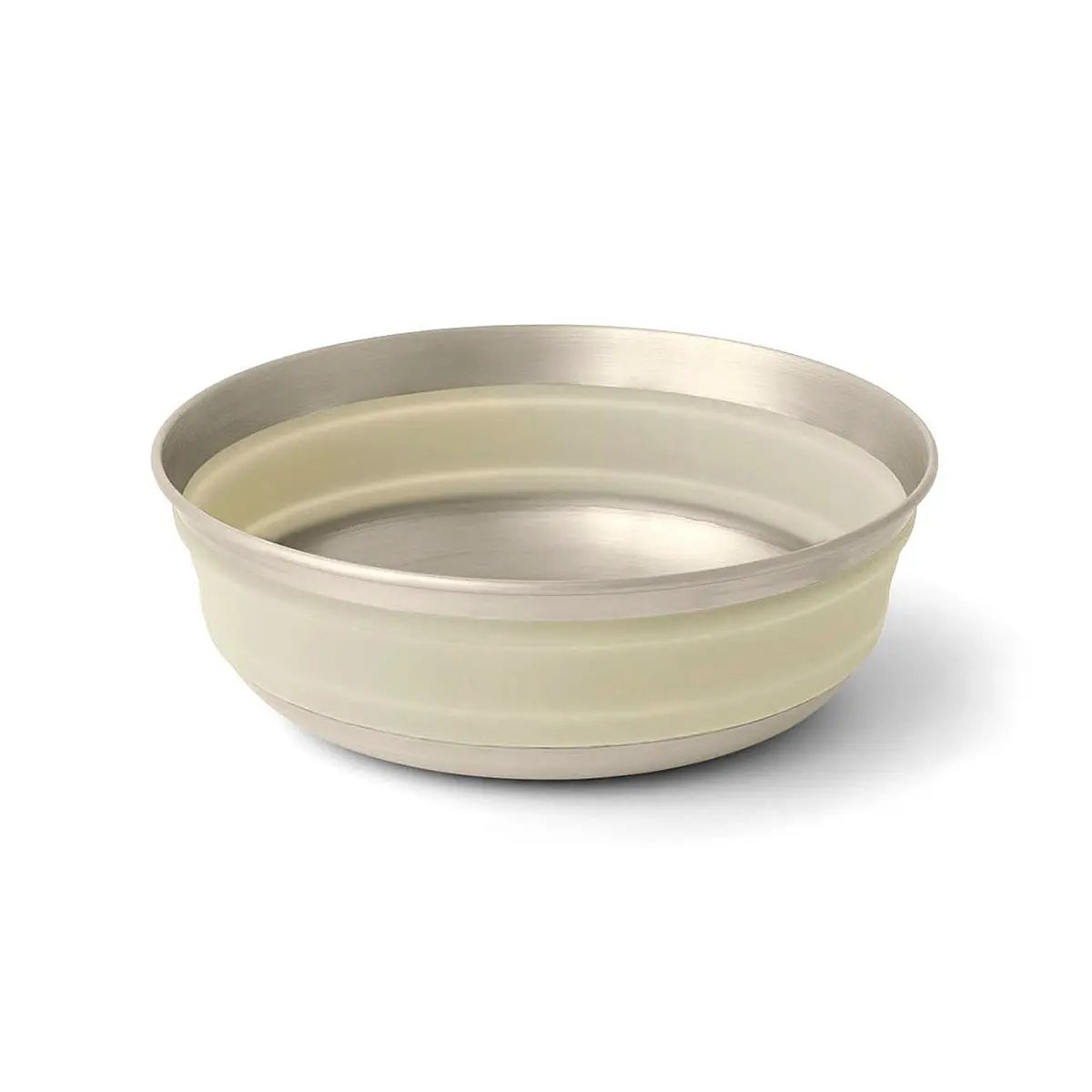 ディツアーステンレスボウルはステンレスとシリコンを組み合わせたシートゥサミットで最もタフな折りたたみ式ボウル。折りたたむと21mmに圧縮でき、車の荷室や自宅でコンパクトに収納できます。底面にシリコンの滑り止めを備え、使用時やパッキング時にカタつきません。