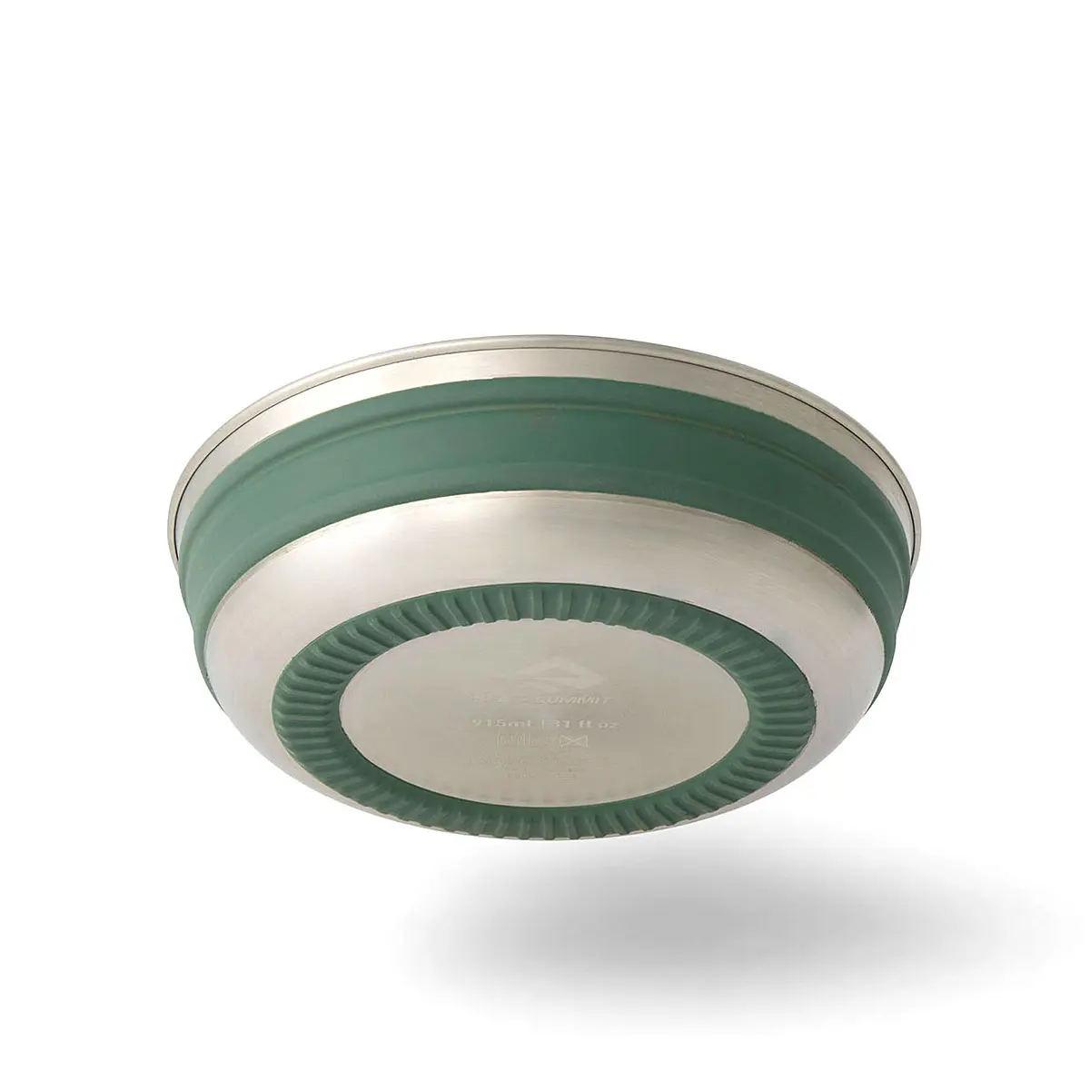 ディツアーステンレスボウルはステンレスとシリコンを組み合わせたシートゥサミットで最もタフな折りたたみ式ボウル。折りたたむと21mmに圧縮でき、車の荷室や自宅でコンパクトに収納できます。底面にシリコンの滑り止めを備え、使用時やパッキング時にカタつきません。