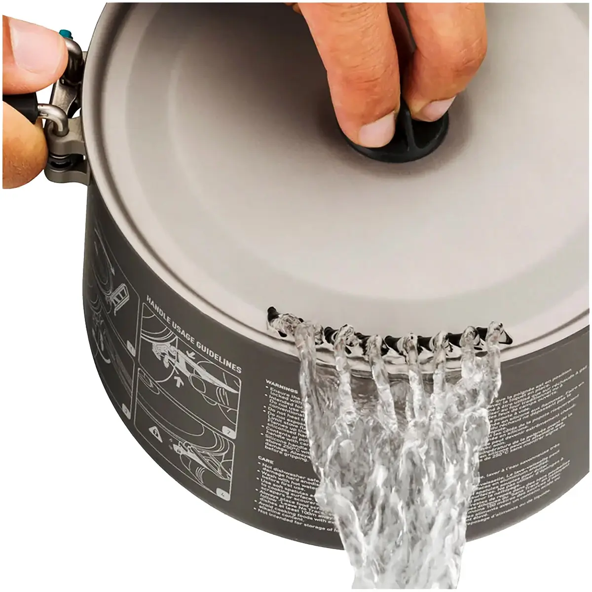 ハードアナダイズド加工が施されたアルファポットは丈夫で軽量。高性能でスタイリッシュなアウトドアクックウェアです。ファミリーキャンプからエクスペディションまで用途を選びません。ソロ用からグループ用まで機能的にデザインされており、アルファパンや新製品のデルタライトシリーズがコンパクトに収納できます。独自のピボットロックハンドルは、使用時にはしっかり確実にロックされ、収納時にはフタを固定してすっきりコンパクトになります。ハードアナダイズド加工された滑らかな表面は丈夫で摩擦に強く、内部の洗浄も簡単です。フタの穴はスムーズに湯切りできるよう入念に形状がデザインされています。