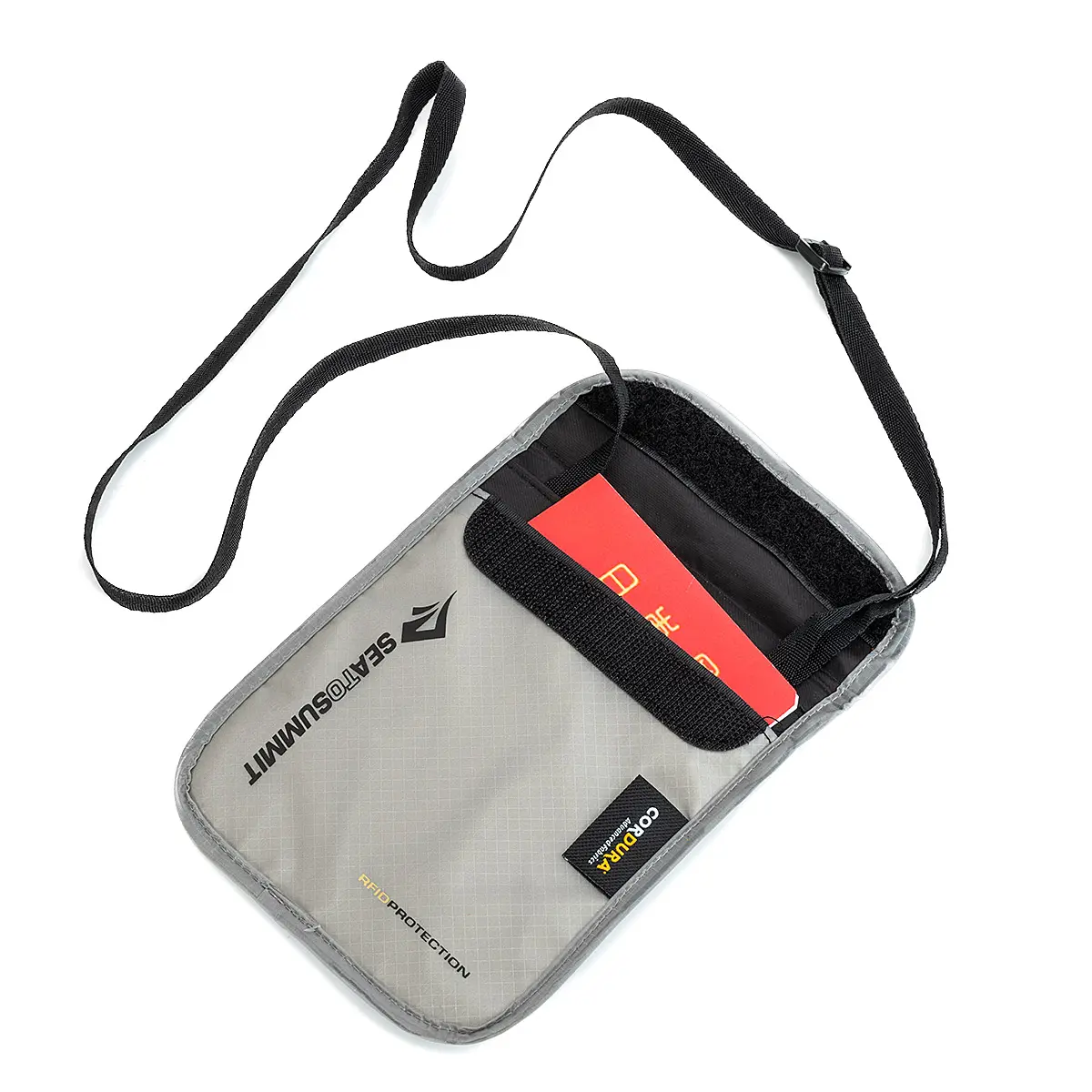 パスポートや現金などの貴重品を入れるシンプルなポーチです。軽量かつ頑丈なウルトラシルファブリックにスキミングからICカード情報をまもるRFIDプルーフ生地を内蔵。パスポートや紙幣の携帯に適しています。背面は肌触りの良い3Dエアメッシュ製。
