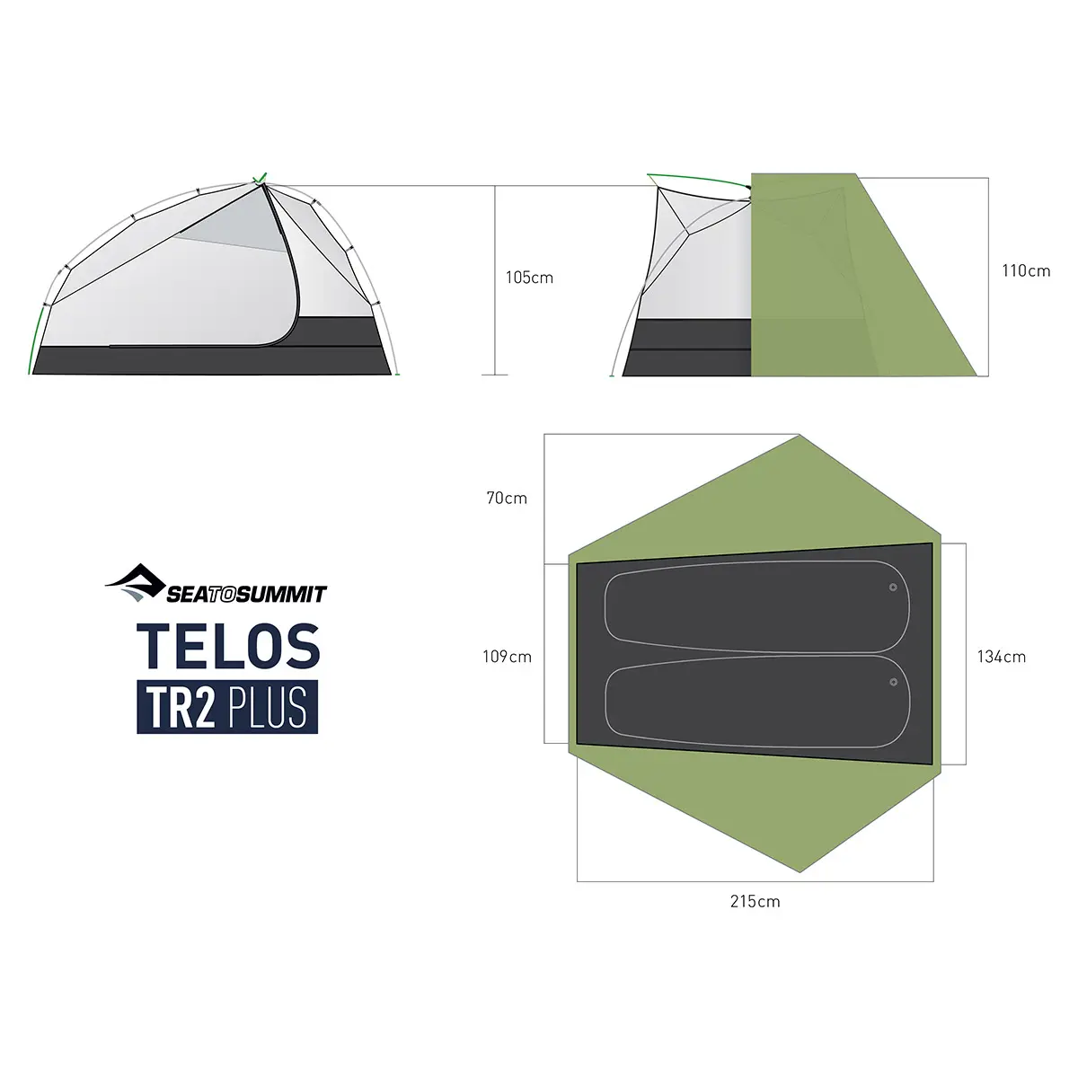 テロスはフル機能を備えたシリーズ。外への視界を妨げない高く大きなドア、驚きの広さ、効果的な換気性能などにより、高い汎用性と同時に優れた居住性、快適性も実現しています。好みのキャンプスタイルに応じて、セミオープンシェルターとしてハングアウトモードも選べます。TR2プラスはインナーテントがファブリック+ファブリックで構成された2人用テント。