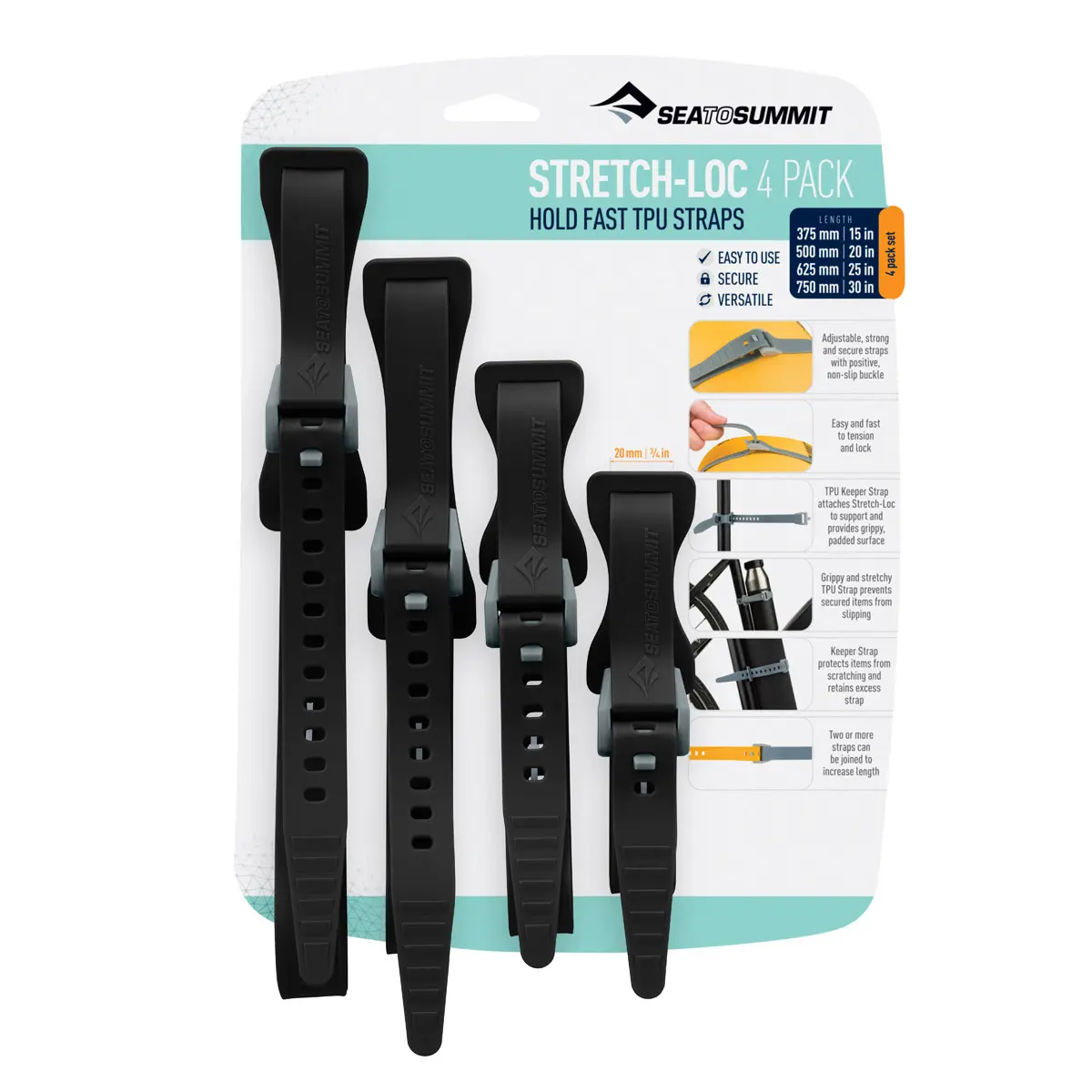 様々なモノの取付、結束、圧縮に使えるストラップの長さが違う4本セット。固定方法は伸びるストラップを引いてバックルにはめるだけ。素早く確実にロックできます。また、本体と別に「キーパーストラップ」を搭載しており、摩擦による傷やズレ、脱落を防ぎます。