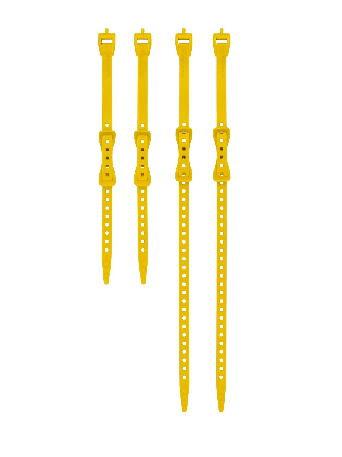 様々なモノの取付、結束、圧縮に使えるストラップ。固定方法は伸びるストラップを引いてバックルにはめるだけ。素早く確実にロックできます。また、本体と別にコンプレッションストラップとして使用したり、複数を連結して長さを延長したりと、様々なパッキングや固定用途に活躍します。また、本体と別に「キーパーストラップ」を搭載しており、固定物を取り外した後もストラップをそのままの状態でフレームなどに保持でき、付け直す手間や不要摩擦による傷やズレ、脱落を防ぎます。