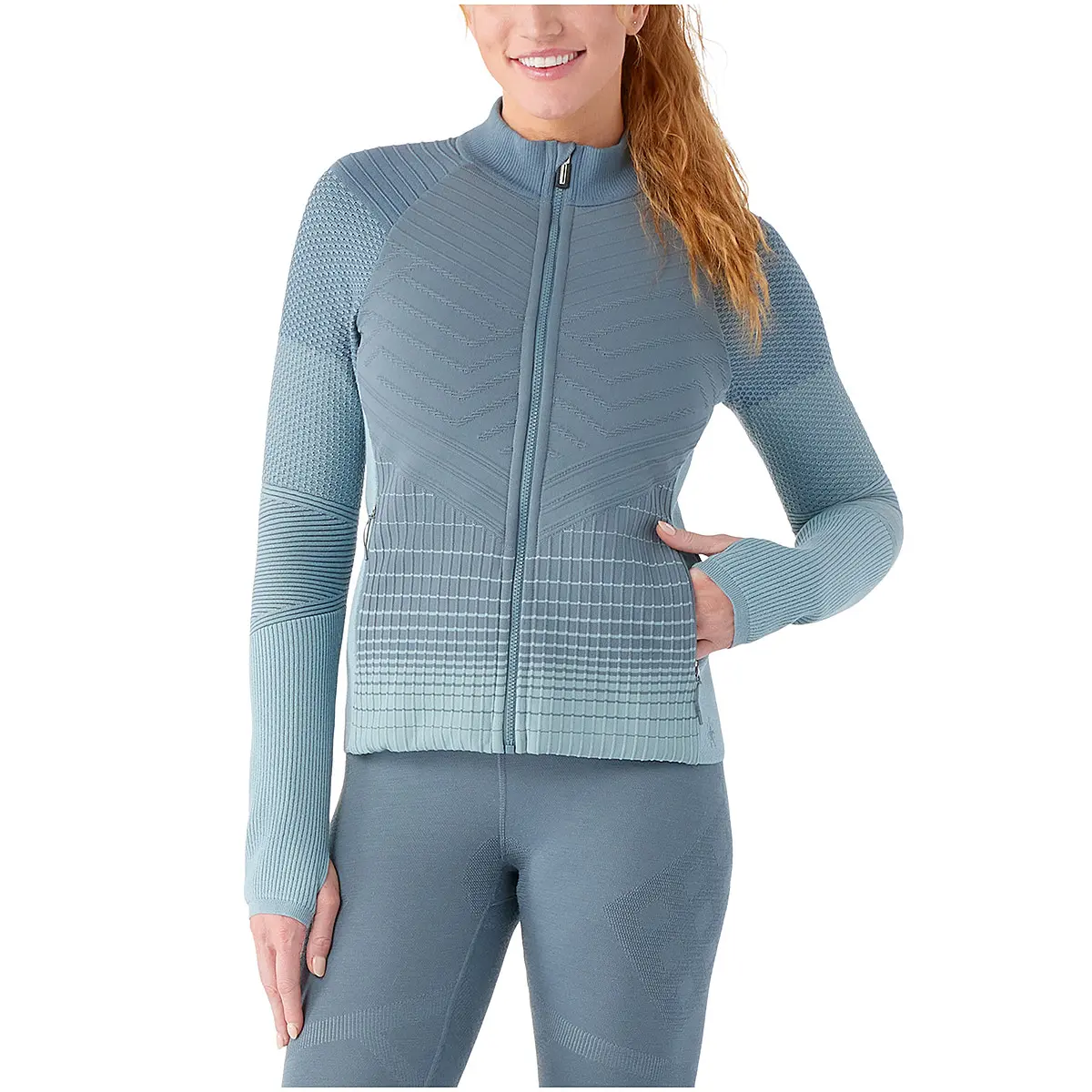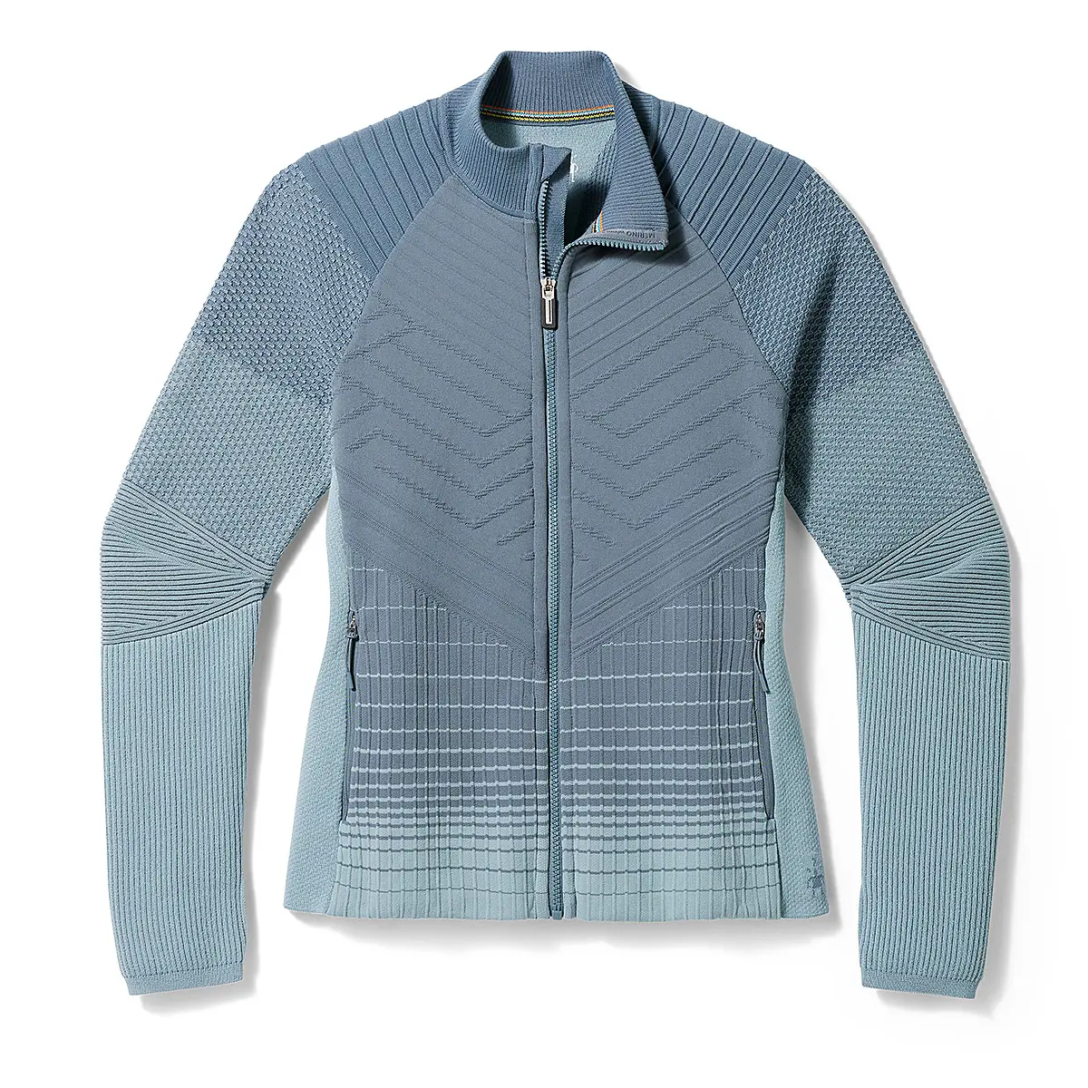 寒冷期の発汗を伴うアクティビティに最適な、温度コントロールに優れたインシュレーションジャケット。完全ニットのミッドレイヤーはDWR(耐久性撥水)加工が施され、雨風から身体を保護します。リサイクルウールを50%使用した独自開発のインサレーションは保温性、透湿性、断熱性を備え、濡れても蒸れにくくなっています。部位によって素材や編み方を変えることで縫い目をなくし、抜群のフィット感と着心地を実現しました。ウールの中綿にナイロンの表地で保温性と防風性に優れたフロント、3D構造のイントラニットが身体に追従する背面と袖、メッシュ構造が汗蒸れを防ぐ脇下と背面上部。イントラニットは、湿度・温度コントロールと防臭性に優れるメリノウールをベースに、しなやかな肌触りと冷却特性のあるテンセルや伸縮性の高い素材を3Dに編み込んだスマートウール独自のニッティング技術です。保温性と通気性の両立、フレックスゾーンのフィット感、メリノウールの快適さ、全てを一着のウェアにまとめました。