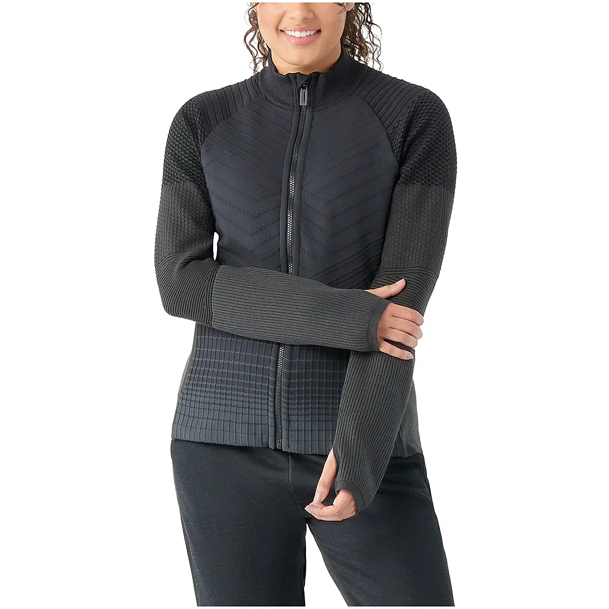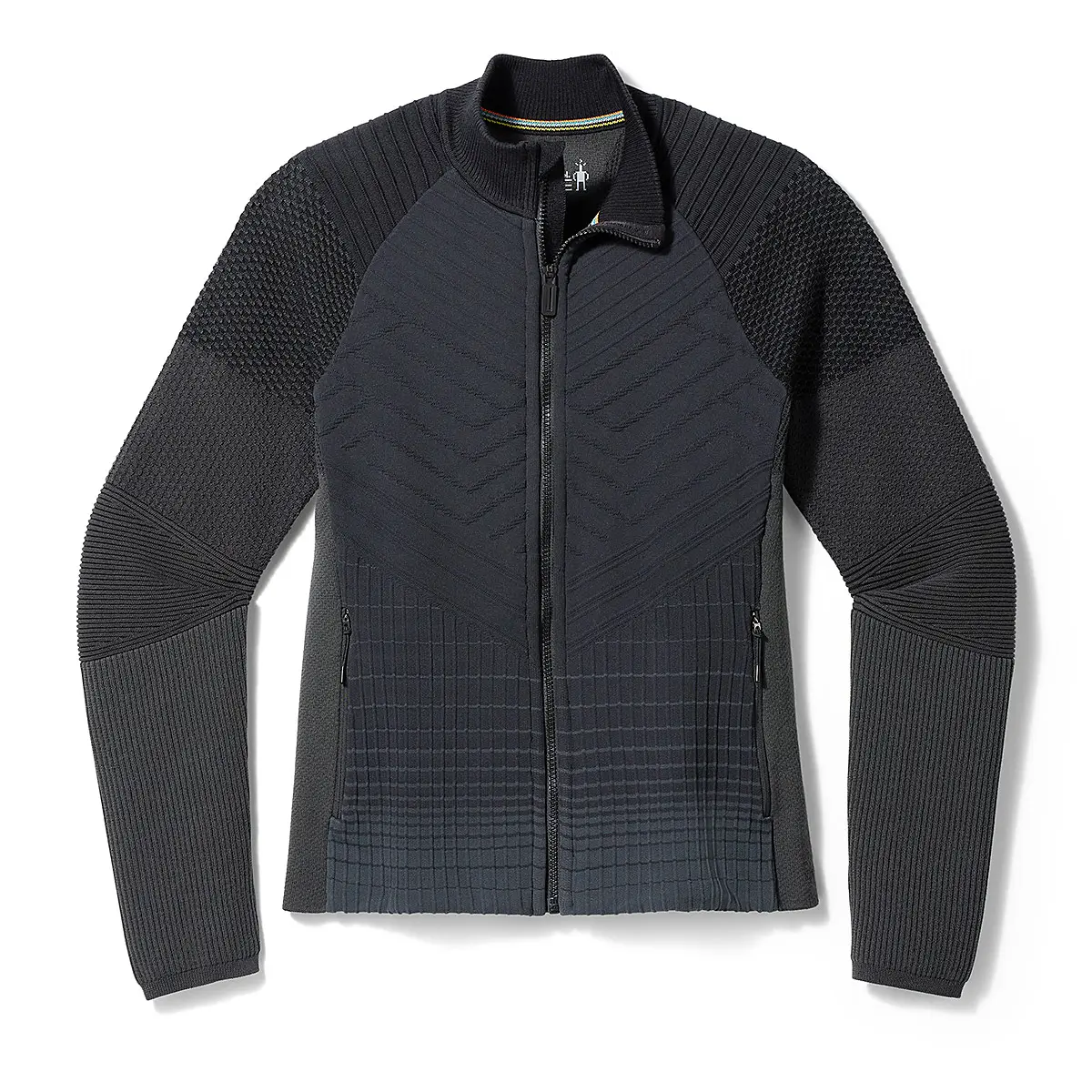 寒冷期の発汗を伴うアクティビティに最適な、温度コントロールに優れたインシュレーションジャケット。完全ニットのミッドレイヤーはDWR(耐久性撥水)加工が施され、雨風から身体を保護します。リサイクルウールを50%使用した独自開発のインサレーションは保温性、透湿性、断熱性を備え、濡れても蒸れにくくなっています。部位によって素材や編み方を変えることで縫い目をなくし、抜群のフィット感と着心地を実現しました。ウールの中綿にナイロンの表地で保温性と防風性に優れたフロント、3D構造のイントラニットが身体に追従する背面と袖、メッシュ構造が汗蒸れを防ぐ脇下と背面上部。イントラニットは、湿度・温度コントロールと防臭性に優れるメリノウールをベースに、しなやかな肌触りと冷却特性のあるテンセルや伸縮性の高い素材を3Dに編み込んだスマートウール独自のニッティング技術です。保温性と通気性の両立、フレックスゾーンのフィット感、メリノウールの快適さ、全てを一着のウェアにまとめました。