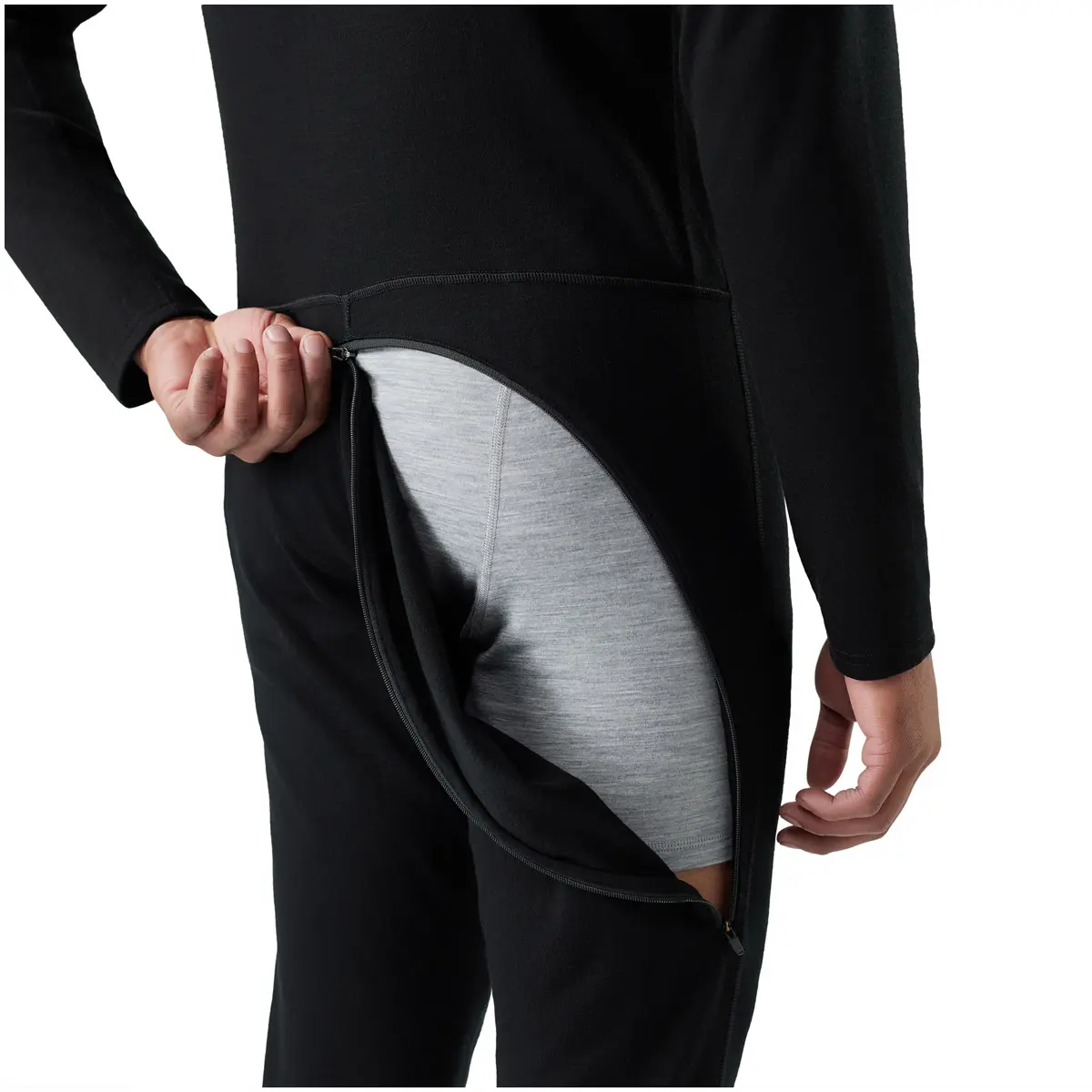 100%メリノウールを使用したワンピース。スリムフィットを採用し、身体に沿ったシルエットと伸縮性のあるニット生地の為、身体の動きを妨げません。腰までのフロントジッパーで脱ぎ着しやすく、ジッパー付きのドロップシートが急な用足しにも対応します。ゲレンデからバックカントリーでの厳冬期スキーやスノーボードのベースレイヤーとして。裾の捲れ上がりを気にせず、腰を温め滑りに集中出来ます。