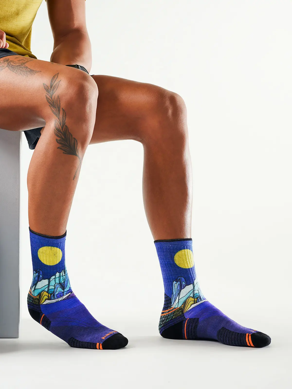 ハイクシリーズで最も薄手のソックス。フィット感に優れ、運動量の多いアクティビティーに適しています。アスリートでありアーティストでもあるブルックリン・ベルのグラフィックをソックス全体にプリント。ローカットやミッドカットのトレッキングシューズ/アプローチシューズとの相性が良く、薄手なのでトレランシューズにもマッチします。ストレッチ素材とメッシュゾーンを組み合わせることで通気性を確保しながらズレを防ぎ、靴擦れのリスクを軽減。つま先の縫い目をフラットに仕上げる独自のニッティング技術がつま先の不快なゴロつきを解消します。肌に触れる部分はメリノウールの快適さを保ちつつ外側をナイロンで補強することで、高い耐久性を実現。責任ある方法で調達されたZQ認証のメリノウールを使用しています。