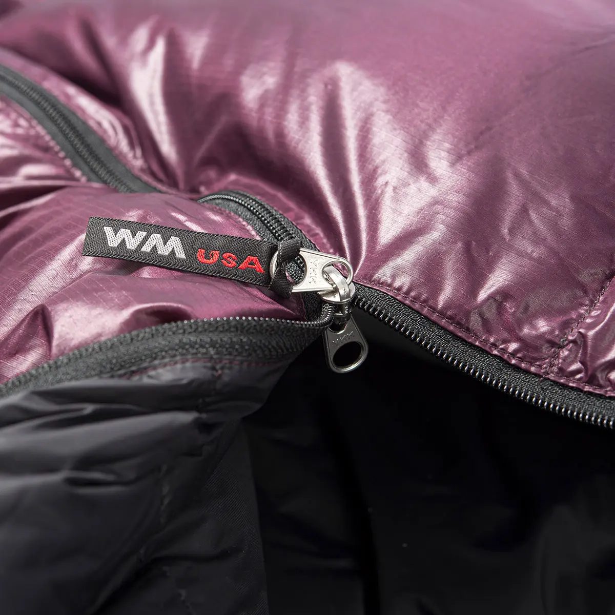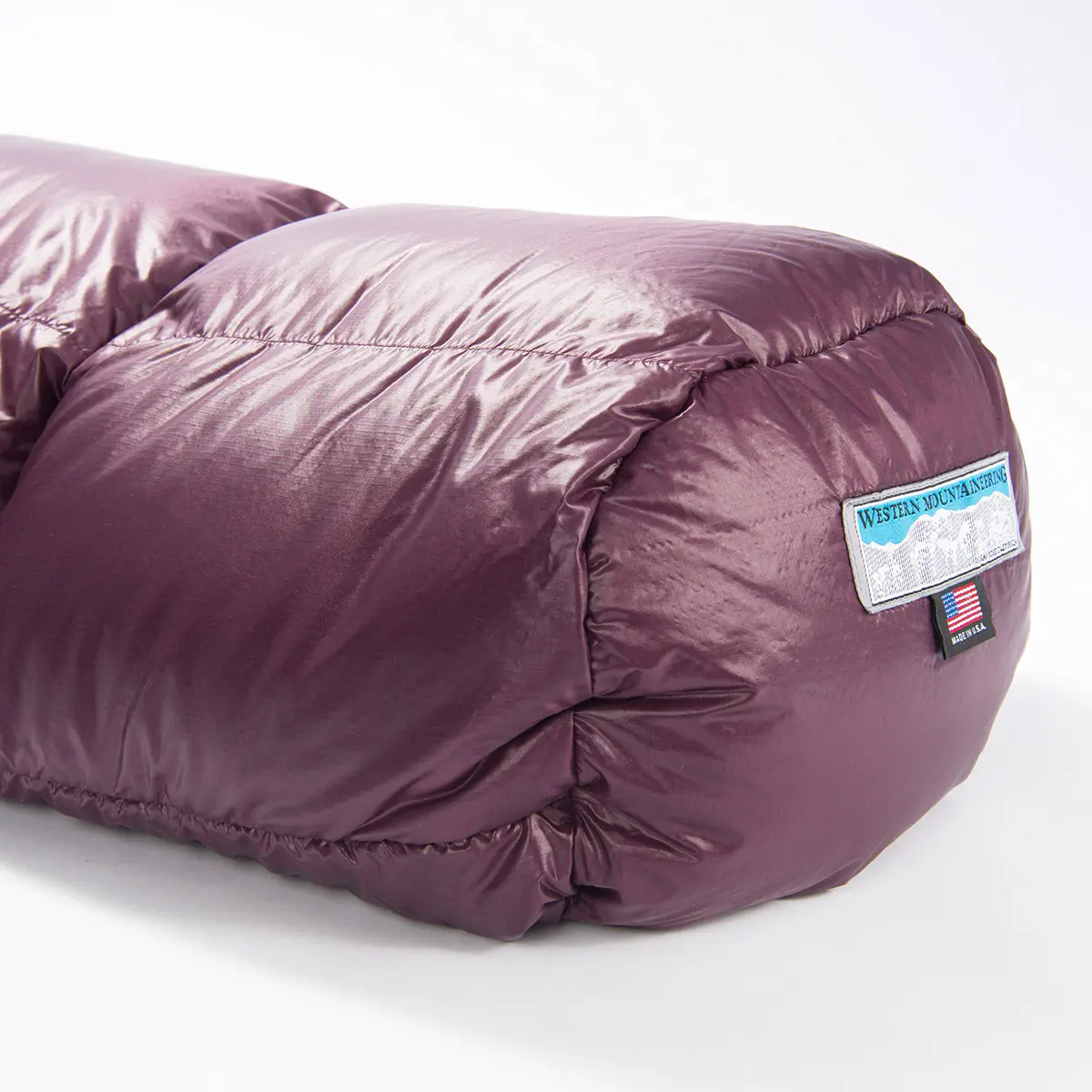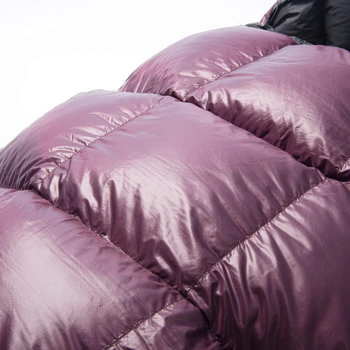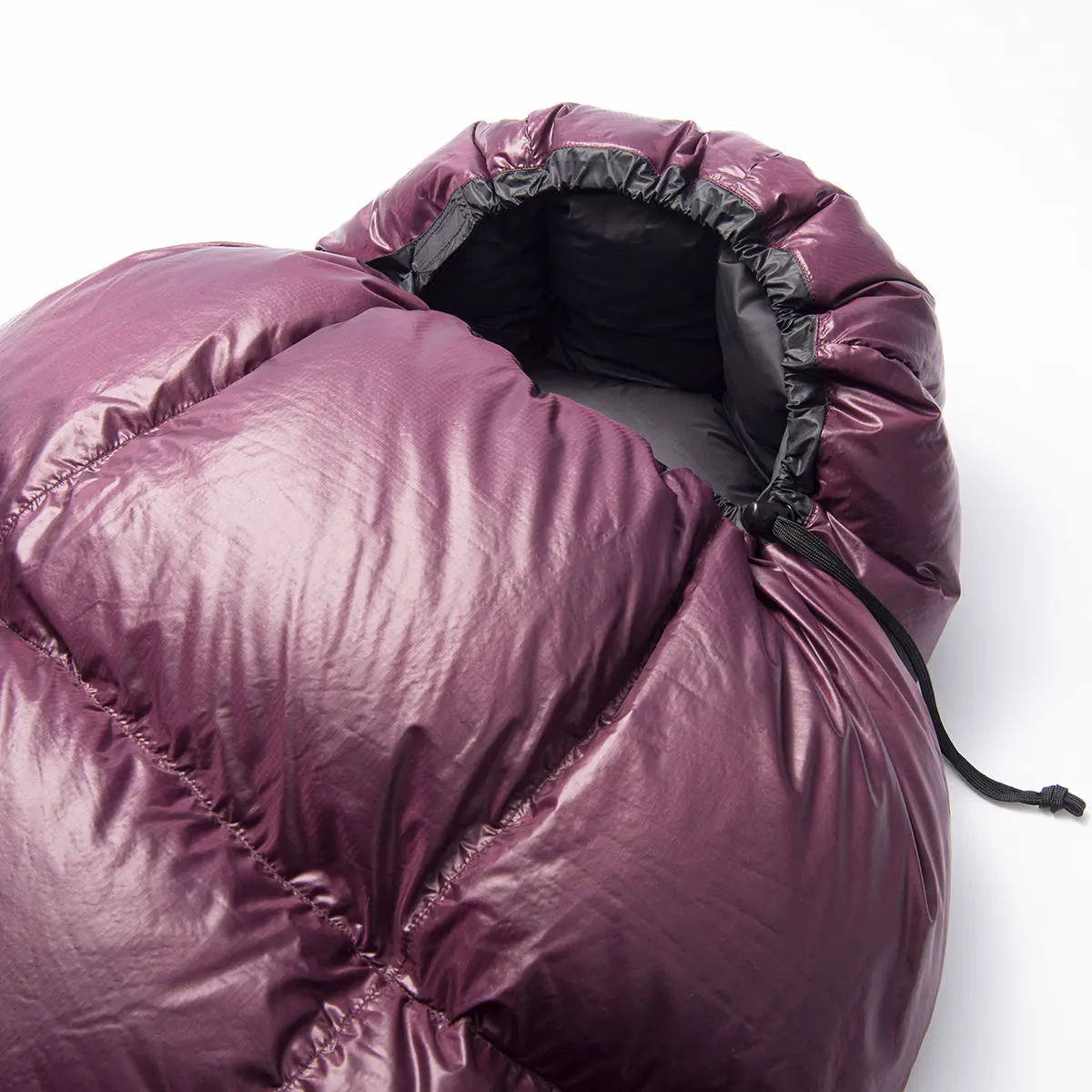 軽量シェル素材のシンプルなバッフル構造に、ハーフジッパーを採用した軽量モデル。使用温度域は2度(摂氏)。