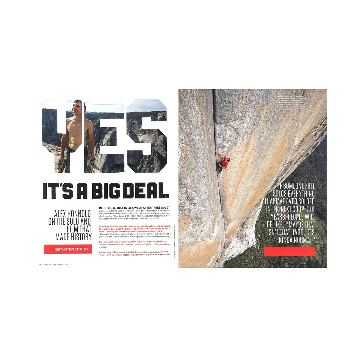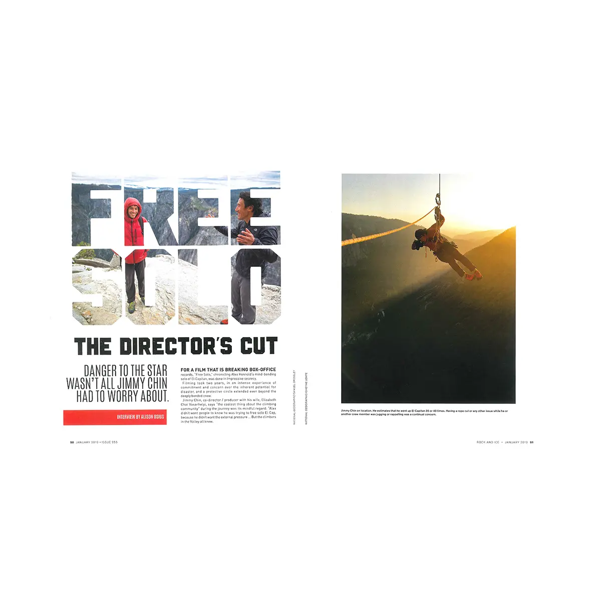ロック&アイス255号はこの2年で達成された2つの偉業を徹底特集。第1特集は難攻不落を謳われたラトックI峰北稜を巡るドラマ。第2特集はクライミング史に燦然と輝くアレックス・オノルドのエルキャピタン・フリーソロと、その映像化の軌跡を追います。