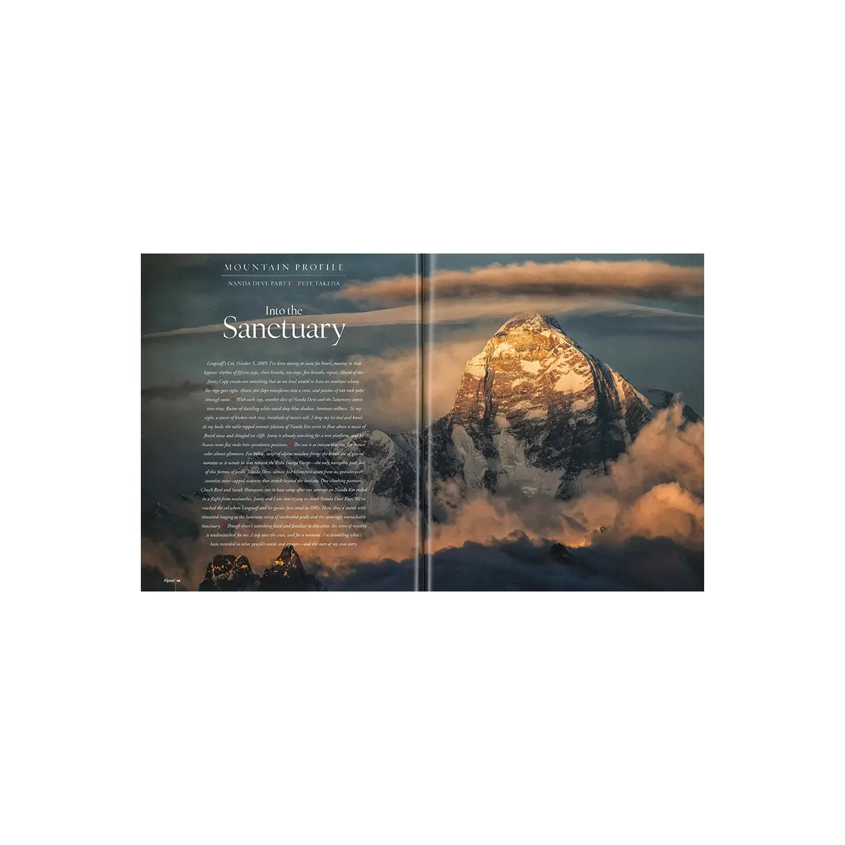 第一特集は世界の山岳エリアを徹底考察する「マウンテンプロフィール」。今回のテーマはインド第2の高峰、ナンダ・デヴィ。アメリカのアルピニスト、ピート・タケダが、ヒンドゥー教の聖山として知られる神秘の山域について語ります。ナンダ・デヴィの外郭に聳え、日本隊によって戦前初登されたナンダ・コートの登攀史も必読。