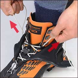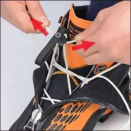 1. 1. 爪先付近の靴ひもをある程度締めて、緩みを取って下さい。