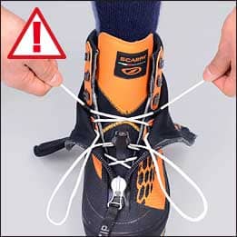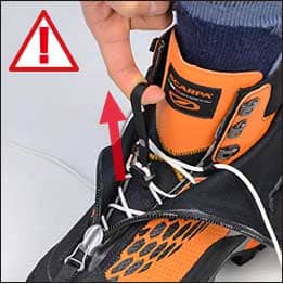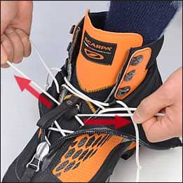 5. 注意! 爪先側の靴ひもが緩んだ状態で引っ張らないで下さい。スライダーが途中でスタックしてしまい、それ以上は締められなくなります。